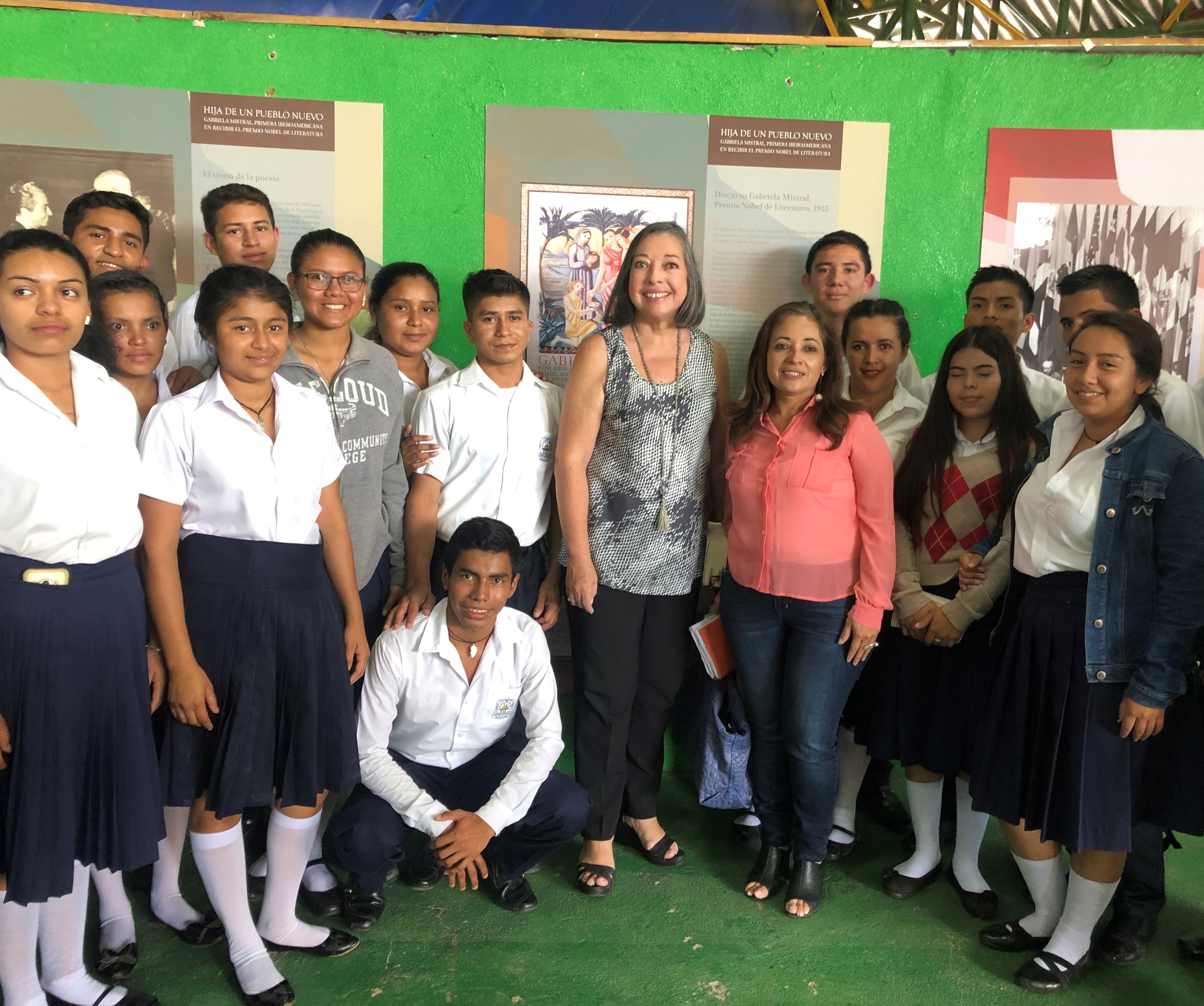 Embajadora Pérez junto a estudiantes de la Escuela Normal José Martí.