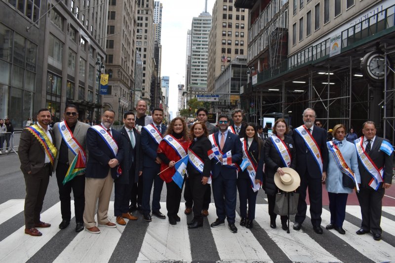 El alcalde Eric Adams, quien justamente venía llegando ese mismo día de una gira por tres países latinoamericanos, teniendo el tema migratorio acaparando todas las primeras planas de la ciudad, desfiló junto a las delegaciones, acompañado del comisionado para asuntos migratorios, Manuel Castro.