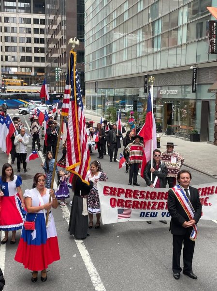 En el evento que contó con carros alegóricos, grupos folclóricos (provenientes de los Estados de Massachusetts, Nueva Jersey y Nueva York), contó con chilenas y chilenos que desplegaron las banderas tricolores celebrando nuestra historia y trayectoria, junto a delegaciones de otros 21 países del continente y de España.