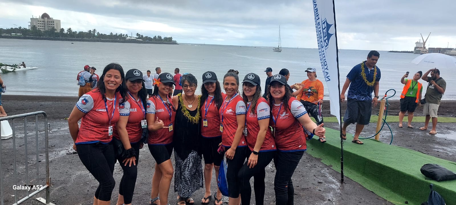 La Cónsul Honoraria de Chile en Samoa, sra. Maria Ines Kappenberger, recibe a la delegación de 37 deportistas chilenos y chilenas que se encuentran participando entre el 10 y 19 de agosto en el Campeonato Mundial de Distancia de la Federación Internacional de VA’A en Samoa 2023. Los y las deportistas pertenecen a los clubes Manu Va’a y Pacíficos y Rapa Nui, quienes han sido acompañados por la Concejala de Deportes de la Municipalidad de Rapa Nui, Ana Pate y el equipo de COMDYR compuesto por la Gerente General, Ana Pua Rapu, la encargada del área de alto rendimiento COMDYR, Daniela Fingerhuth y el jefe de comunicaciones, Miguel Carrasco.