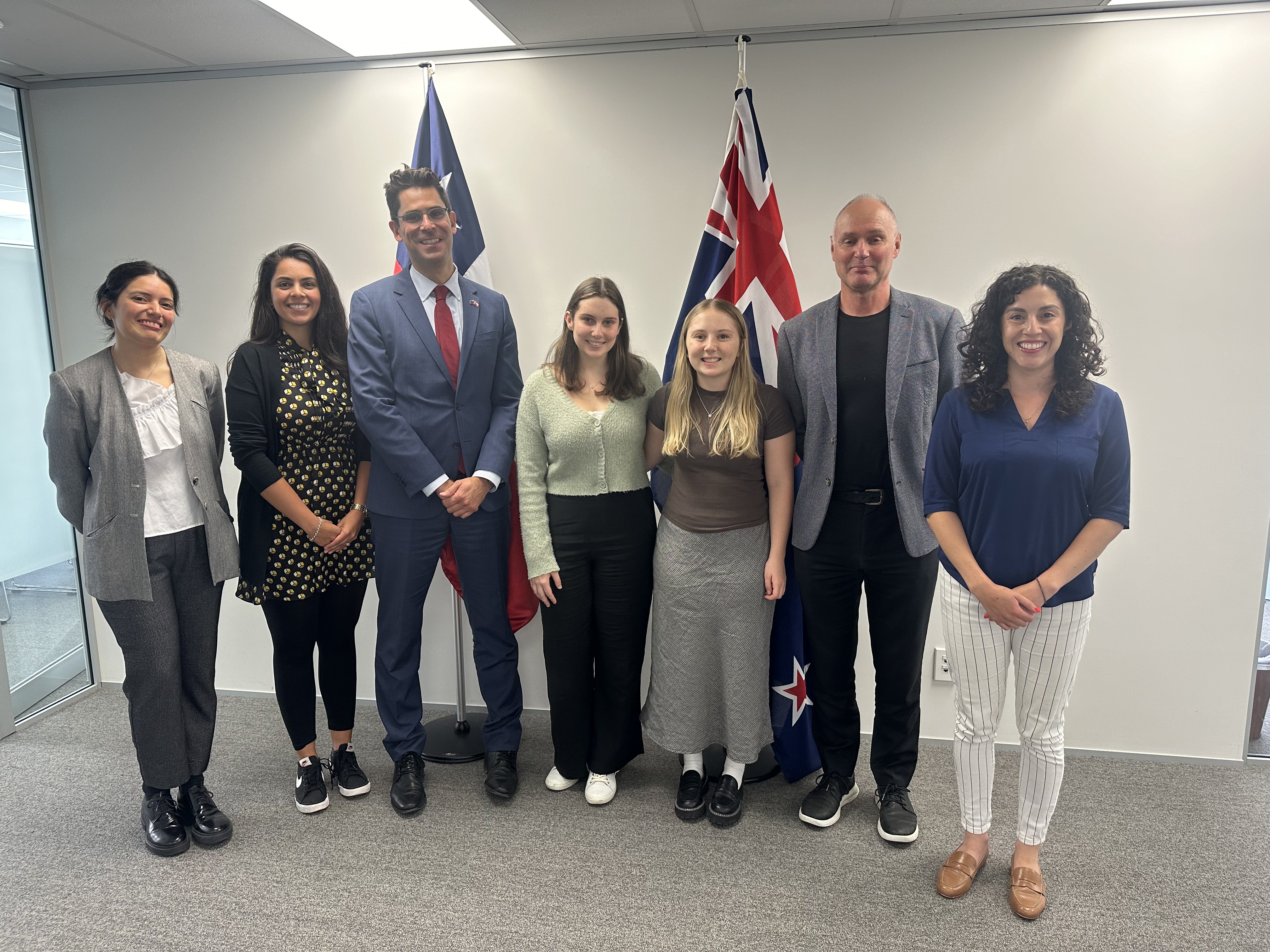 La Embajada de Chile en Nueva Zelandia recibió al Sub Director de Cape Latam, Craig Nicholson, y a la Progamme Manager, Nikki Lima, junto a participantes del programa "Puertas Abiertas" para conocer sus experiencias y sostener un diálogo sobre la vinculación entre Chile y Nueva Zelandia.