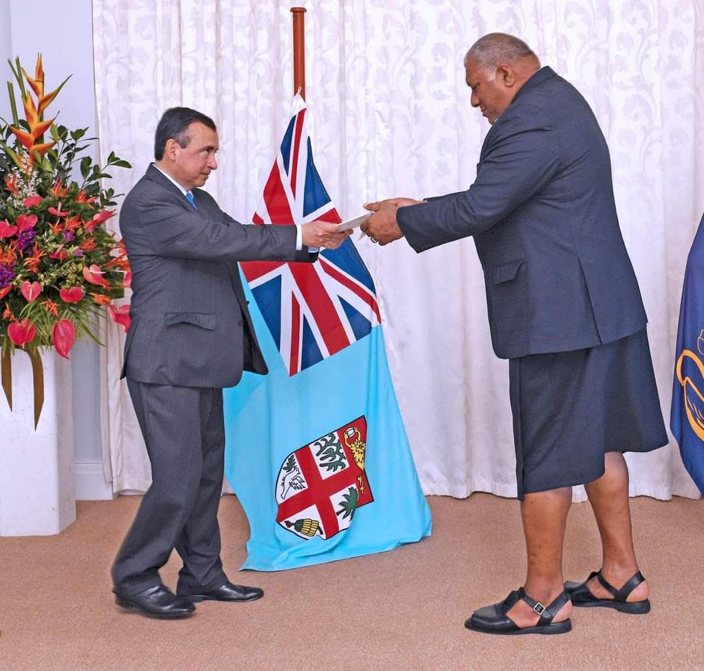 El 14 de septiembre de 2022, el Embajador Hugo Ignacio Llanos Mardones presentó sus cartas credenciales al Presidente de la República de Fiji, Ratu Wiliame Katonivere, como Embajador concurrente ante ese país.