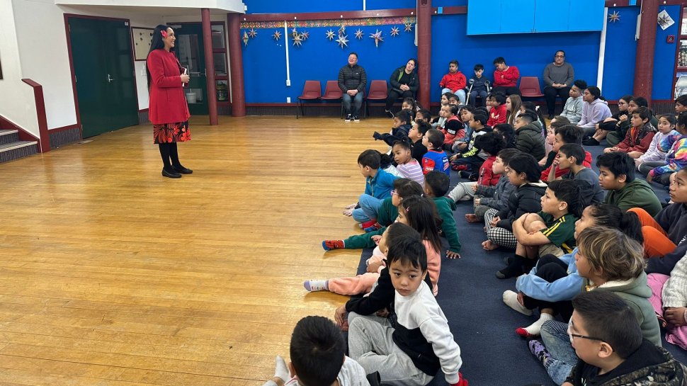 Embajadora Pakarati dona el libro “Poemas, Mōteatea, Poems” de Gabriela Mistral a escuela en Porirua