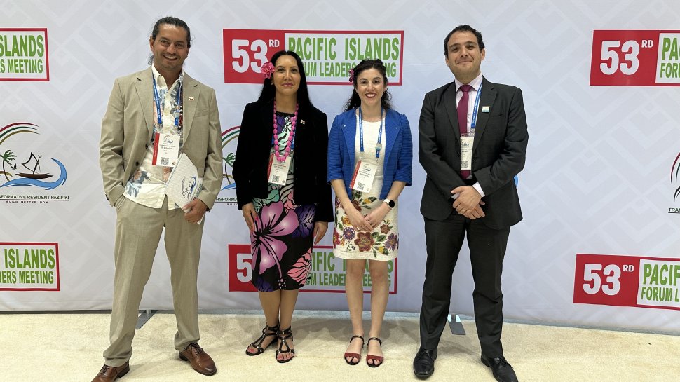 Entre el lunes 26 y el viernes 30 de agosto se llevó a cabo la 53ª Reunión de Líderes del Foro de las Islas del Pacifico (PIF) en Nuku’alofa, en el Reino de Tonga. La delegación chilena que participó en esa instancia fue encabezada por la Embajadora de Chile en Nueva Zelandia, señora Manahi Pakarati, acompañada del señor Salvador Vega, Jefe del Departamento de Océanos y Biodiversidad del Ministerio de Relaciones Exteriores de Chile, del señor Sebastián Yancovic, representante del Consejo del Mar en Rapa Nui "Koro Nui O Te Vaikava", y de la Tercera Secretaria de la Embajada de Chile en Nueva Zelandia, señora Alejandra Farías.