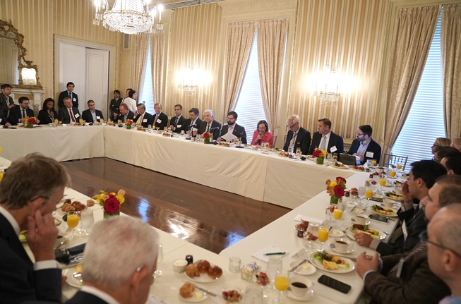 El Embajador Francisco Saffie participó de un encuentro con 30 empresarios y empresarias que representan a las compañías del Council of the Américas, que encabezó el Presidente de la República, Gabriel Boric.
