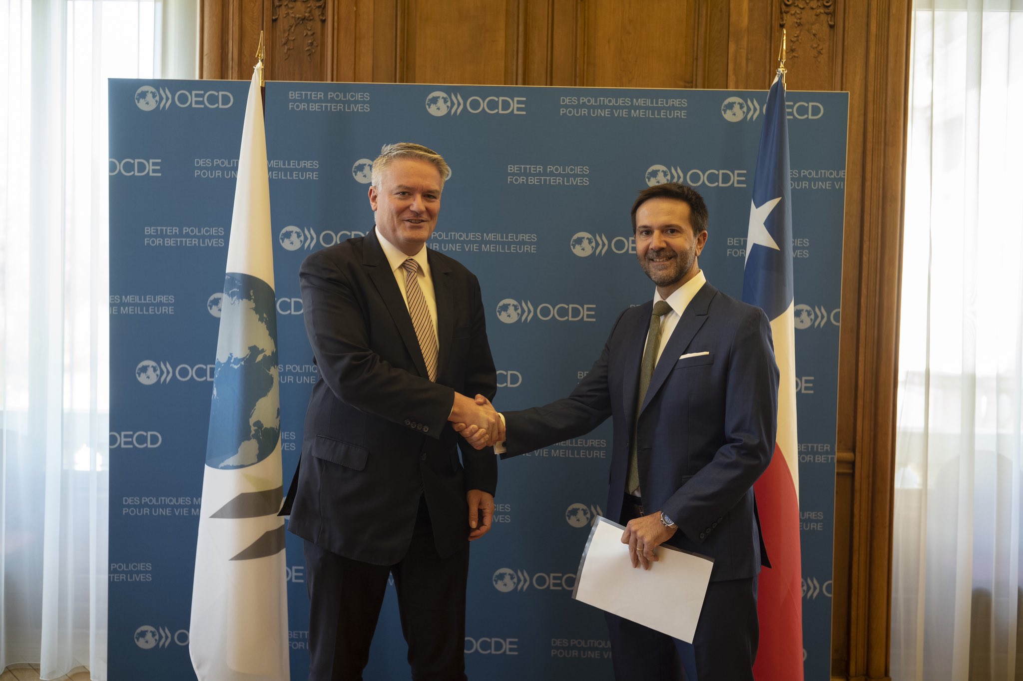 El Embajador Francisco Saffie presentó sus cartas credenciales que lo acreditan como Embajador de Chile ante el Secretario General de la OCDE, Mathias Corman.