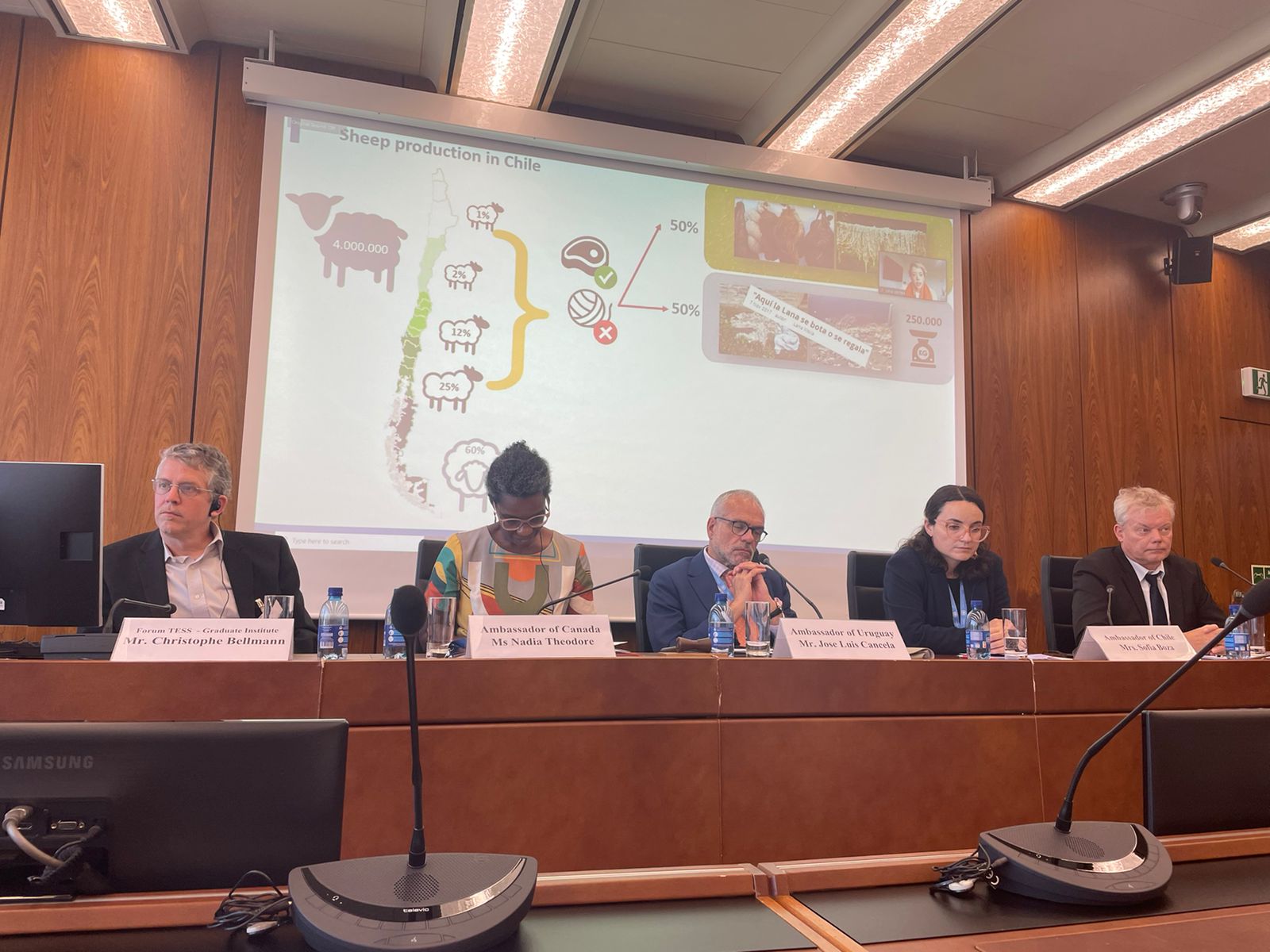 El evento, inaugurado por el Subsecretario de Relaciones Económicas Internacionales, Sr. José Miguel Ahumada, fue moderado por la Embajadora de Canadá ante la OMC, Nadia Theodore, y contó con exposiciones del Embajador de Uruguay ante la OMC, representantes la División de Desafíos Globales de la OMPI, el Foro sobre Comercio Medio Ambiente y los ODS y de la PYME chilena Ecolchado.