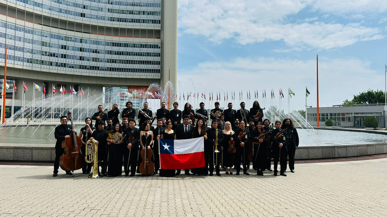 La gira de estos jóvenes culminó en la sede de las Naciones Unidas en Viena, en un concierto que fue gestionado por la embajada y al que asistieron embajadores de países como Honduras, Países Bajos y Uruguay, entre otros representantes de la comunidad internacional en Austria. El concierto ofrecido incluyó obras clásicas de Strauss, la musicalización de los poemas Rocío y Desolación en conmemoración de Gabriela Mistral, así como piezas representativas de artistas de la música popular chilena como Violeta Parra y Víctor Jara, evidenciando el dinamismo, talento interdisciplinar y profesionalismo de la Orquesta, culminando con una bien ponderada cueca en honor a nuestro país.