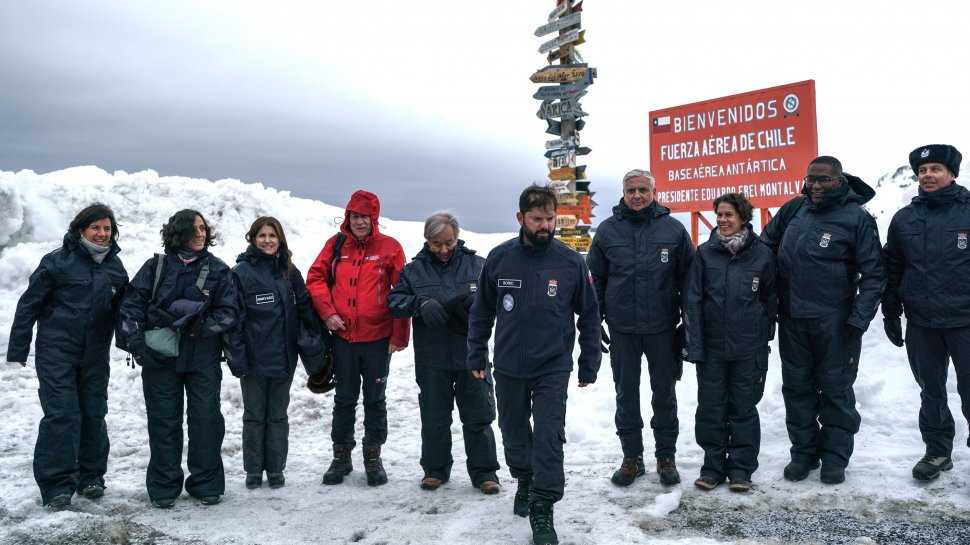 Con una comitiva liderada por el Presidente Gabriel Boric, acompañado del canciller Alberto van Klaveren, las ministra del Medio Ambiente, Maisa Rojas; su par de Ciencia, Tecnología, Conocimiento e Innovación, Aisén Etcheverry; y la representante de Chile ante las Naciones Unidas (ONU), Paula Narváez, se realizó la visita del Secretario General de la ONU, António Guterres, al continente blanco.