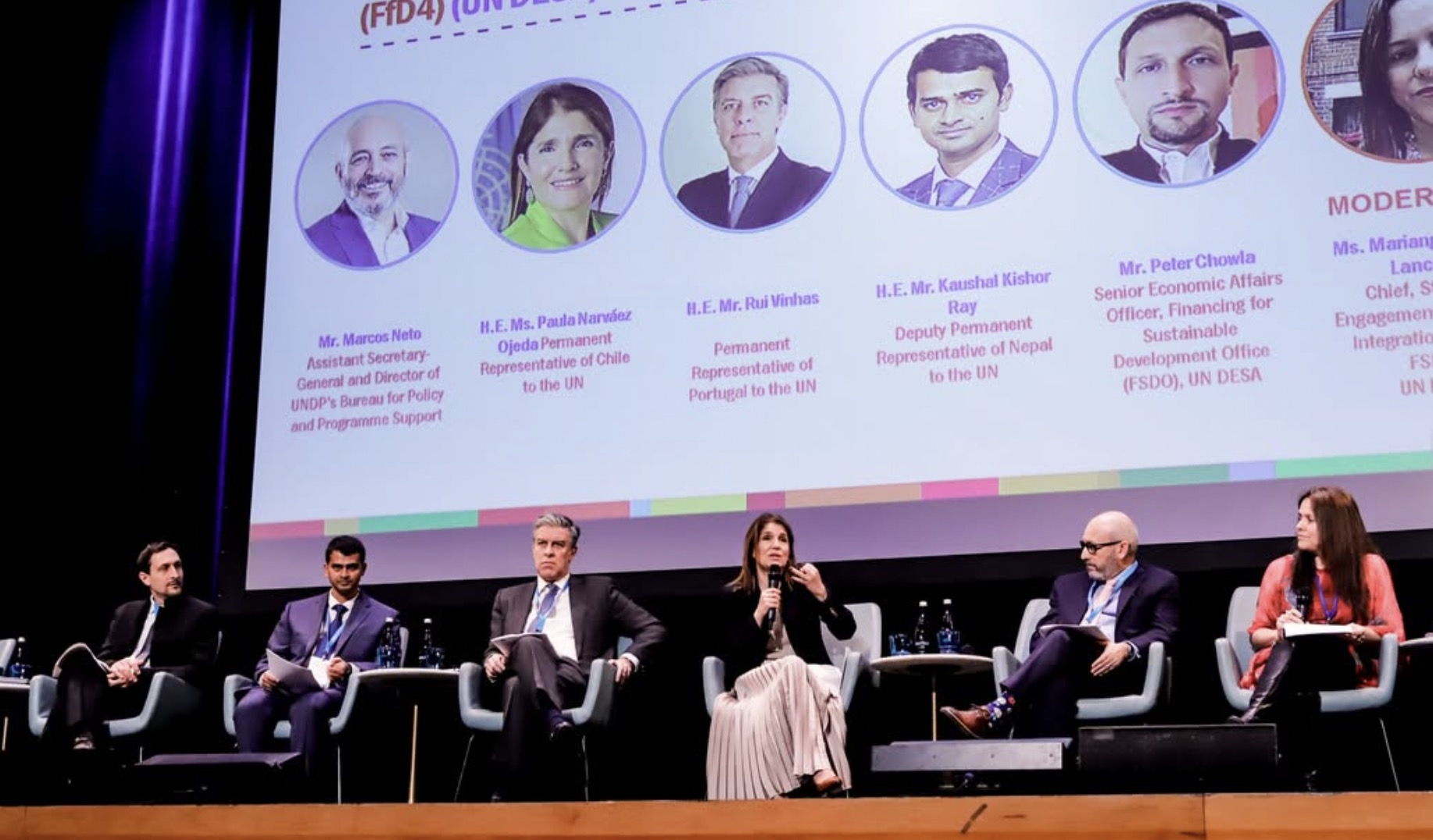 El debate reunió a Marcos Neto, Subsecretario General y Director de la Oficina de Apoyo a Políticas y Programas del PNUD, junto a representantes de alto nivel de Estados Miembros y actores clave en el financiamiento para el desarrollo, además de la embajadora Narváez.