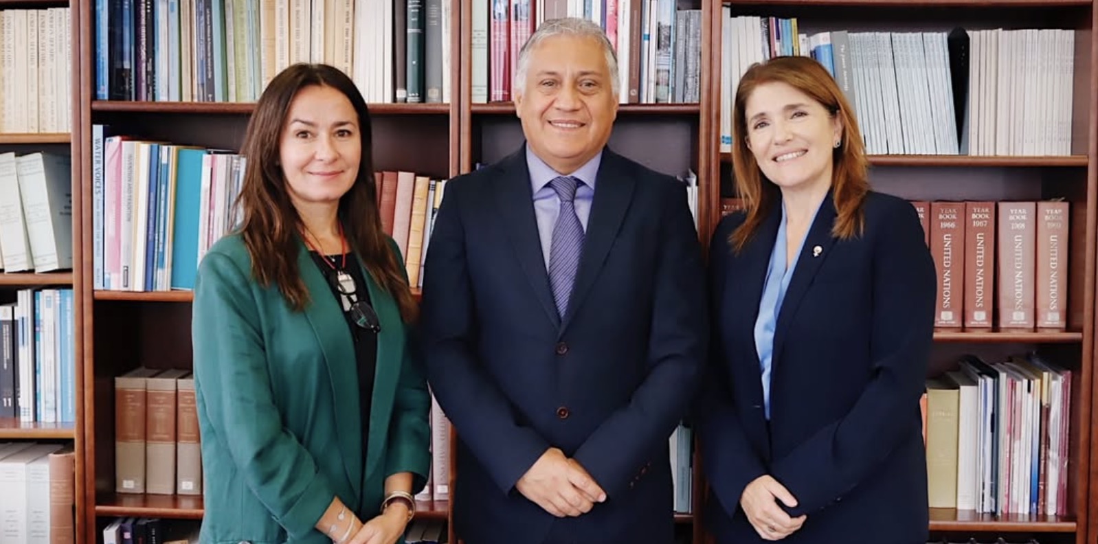 Esta mañana el subsecretario del Ministerio de Obras Públicas, Danilo Núñez, acompañado por la directora de Arquitectura del MOP, Loreto Wahr, sostuvo un encuentro con la embajadora de Chile ante las Naciones Unidas, Paula Narváez.