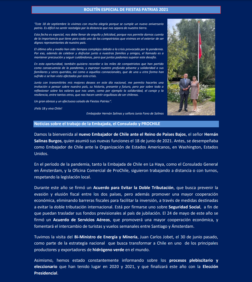 Noticias de Chile N.º 223, 224 y Boletín Fiestas Patrias