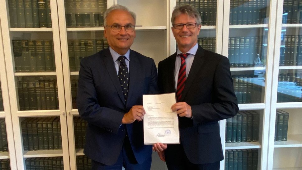 El Embajador de Chile en Países Bajos, Jaime Moscoso Valenzuela, en representación del Gobierno de Chile, realizó el 19 de julio, un aporte voluntario a la Academia de Derecho Internacional de La Haya (ADI) para el año 2023, por un monto de 15.000 euros.