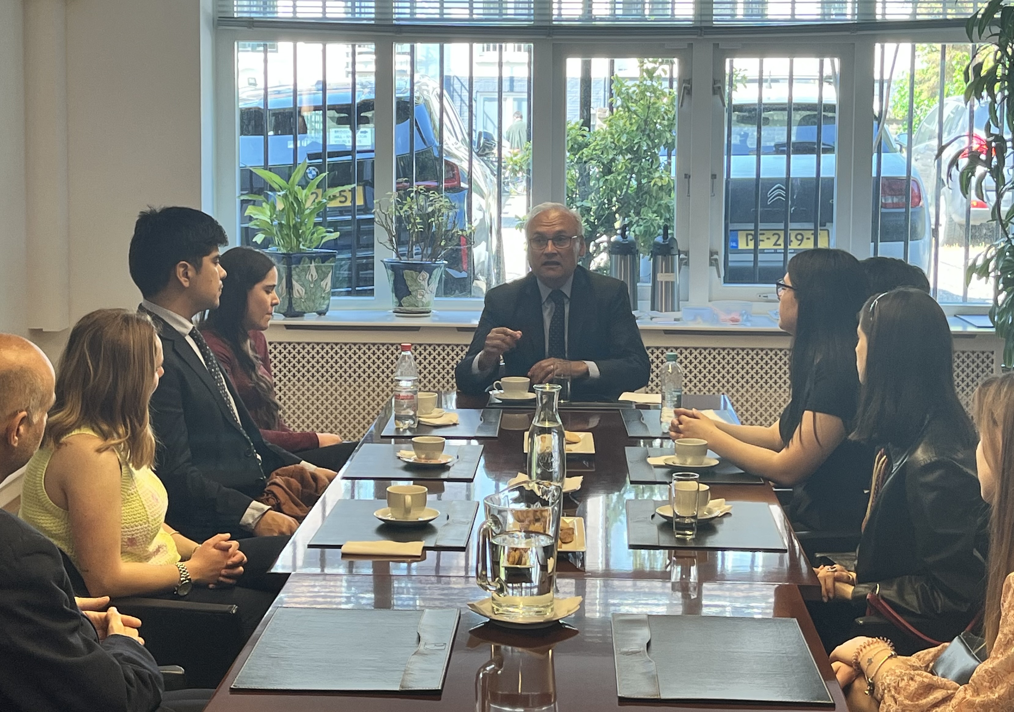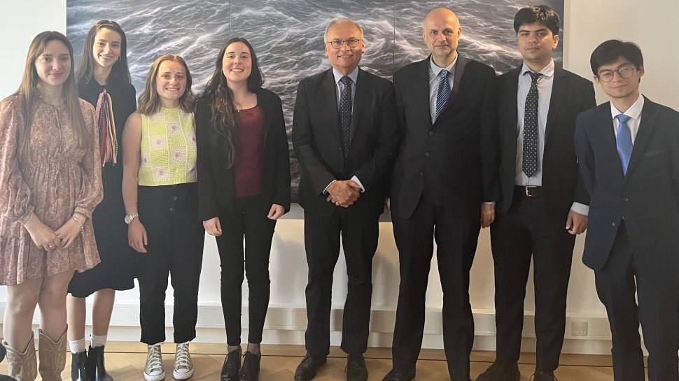 En el encuentro en nuestra embajada, los estudiantes nacionales y extranjeros tuvieron la oportunidad de conversar sobre su experiencia en el concurso y su interés por el derecho internacional. Por nuestra parte, compartimos acerca de la labor que realiza esta embajada y cómo esto se alinea con las prioridades y principios permanentes de la Política Exterior de Chile.