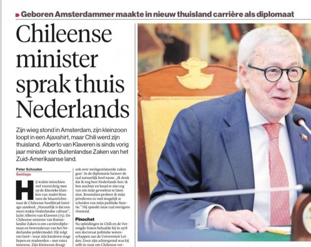 Entrevista del Canciller Alberto Van Klaveren en medio de prensa neerlandés