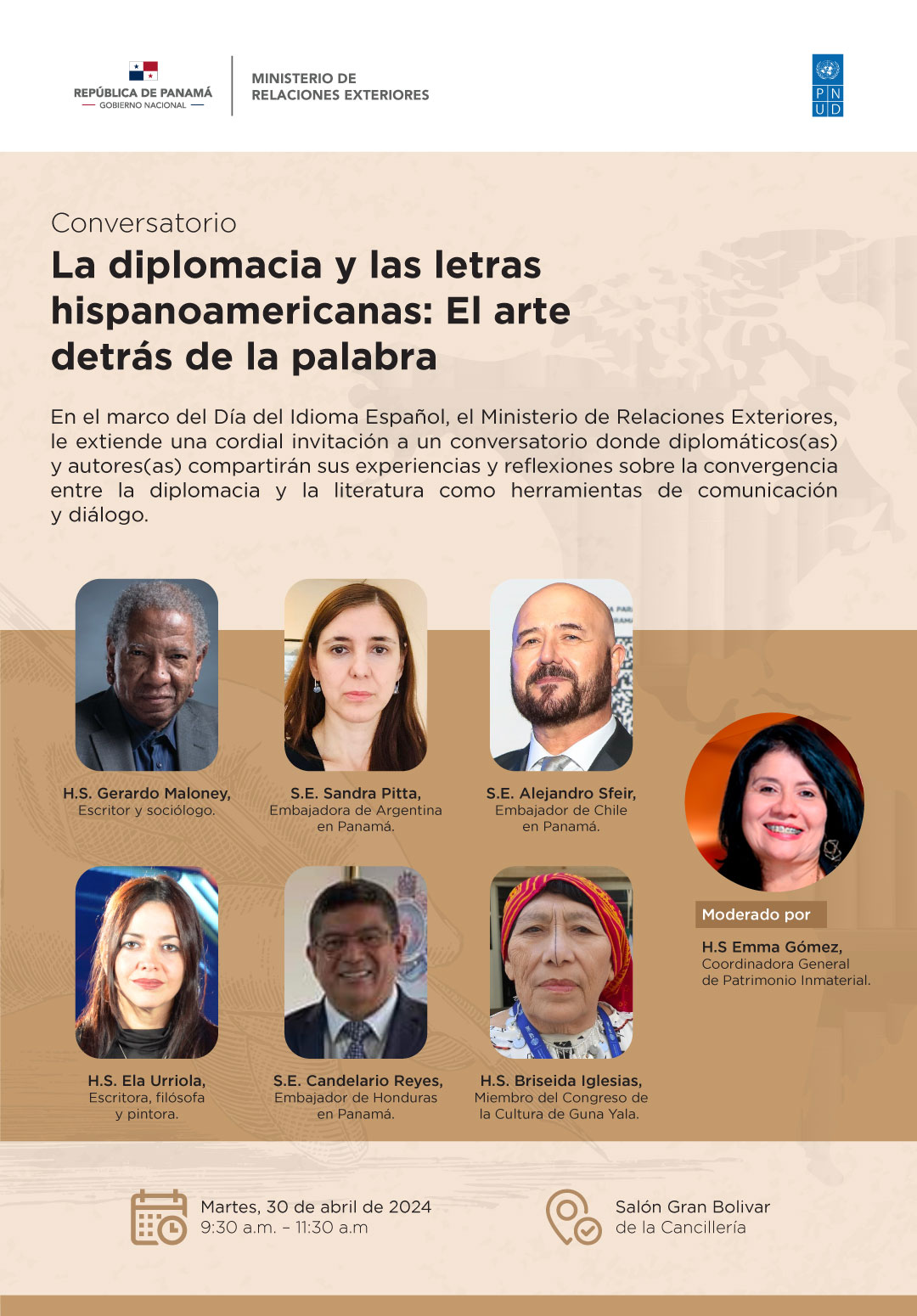 El embajador de Chile en Panamá, Alejandro Sfeir Tonšić, fue invitado a participar en el Conversatorio “La Diplomacia y las Letras Hispanoamericanas: El arte detrás de la palabra”, organizado por el Ministerio de Relaciones Exteriores de Panamá, en el marco del Día Internacional del Idioma Español.