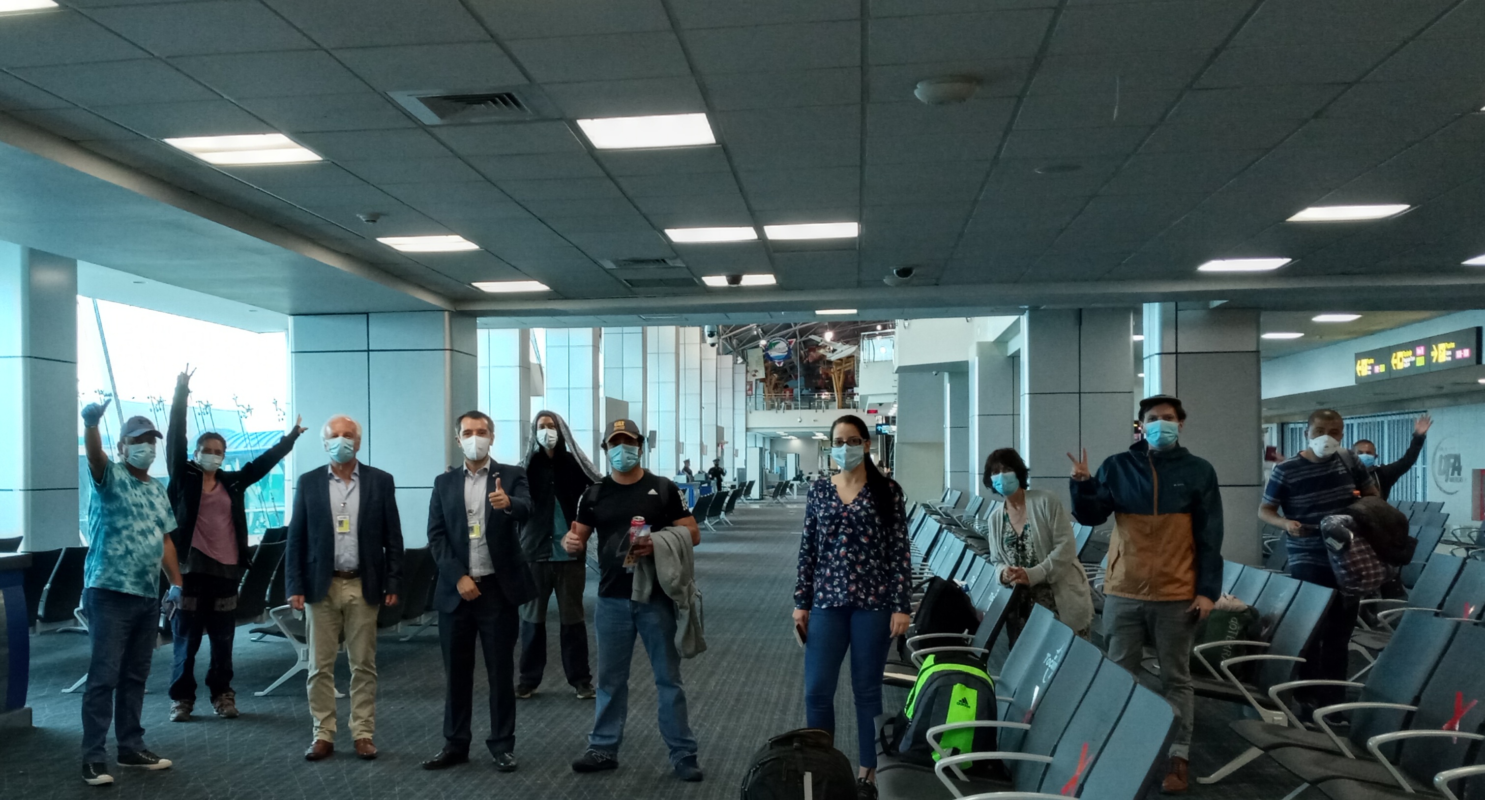 El Embajador de Chile en Panamá, Germán Becker, y el Cónsul Patricio Cabezas acompañaron hoy en el aeropuerto internacional de Tocumen a los connacionales que estaban varados en tierras panameñas y que pudieron abordar el vuelo humanitario que los llevó de regreso a nuestro país.