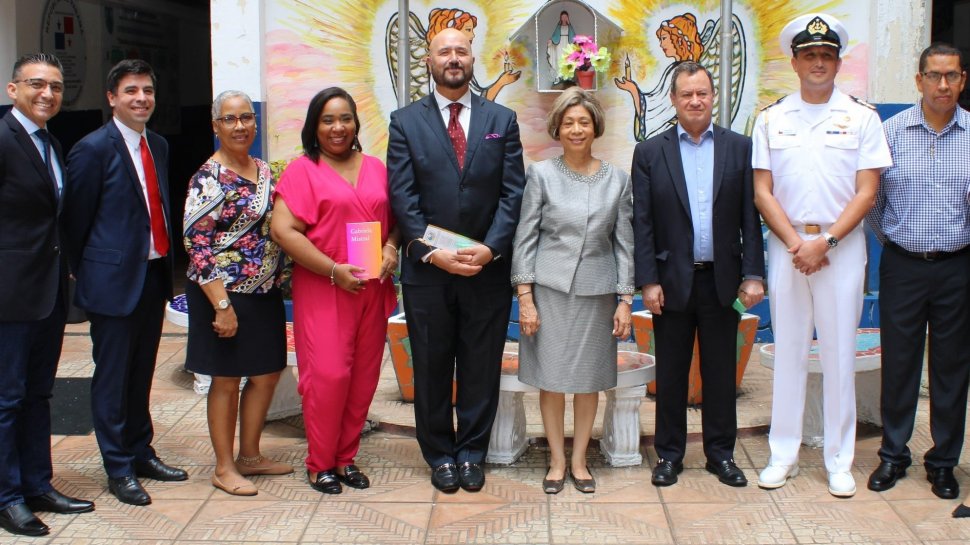 El Embajador Alejandro Sfeir, acompañado por el Ministro Consejero Gonzalo Fernández, el Agregado Defensa, Capitán Cristian Mitrovich, y el Cónsul Pablo Segura, fueron recibidos por la Directora del Centro Educativo Bilingüe República de Chile, Sra. Mireya de Fanovich, y su equipo de docentes, alumnos y representantes de la alcaldía de Ciudad de Panamá y el MEDUCA, con motivo de la celebración de los cien años de este emblemático establecimiento educacional de la capital panameña.