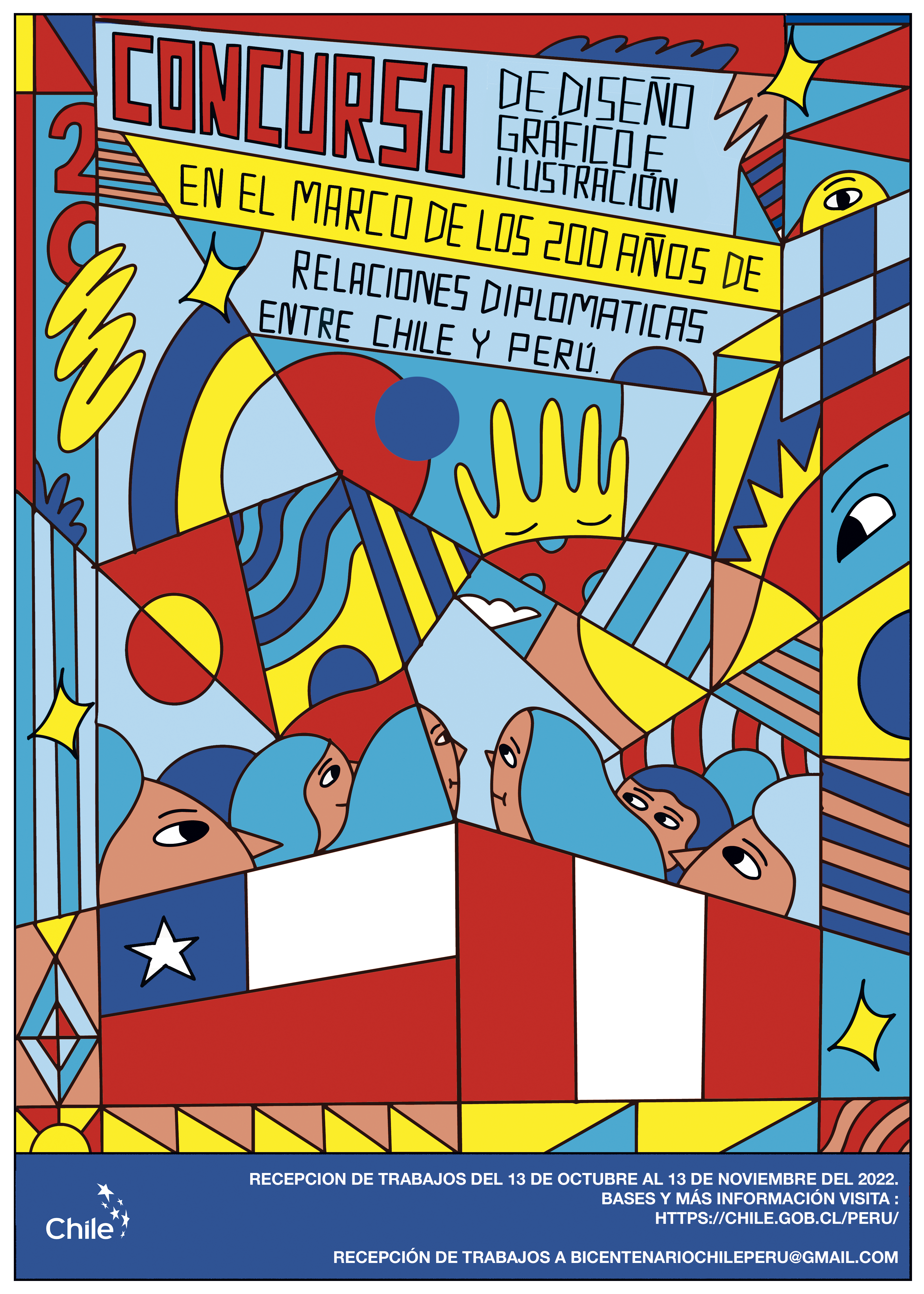 En el marco de la conmemoración del bicentenario de relaciones diplomáticas entre Chile y el Perú, les invitamos a expresar artísticamente y de forma creativa lo que les inspiran los diversos vínculos entre ambos países, a través del Concurso de Diseño Gráfico e Ilustración por la Amistad Chileno Peruana.