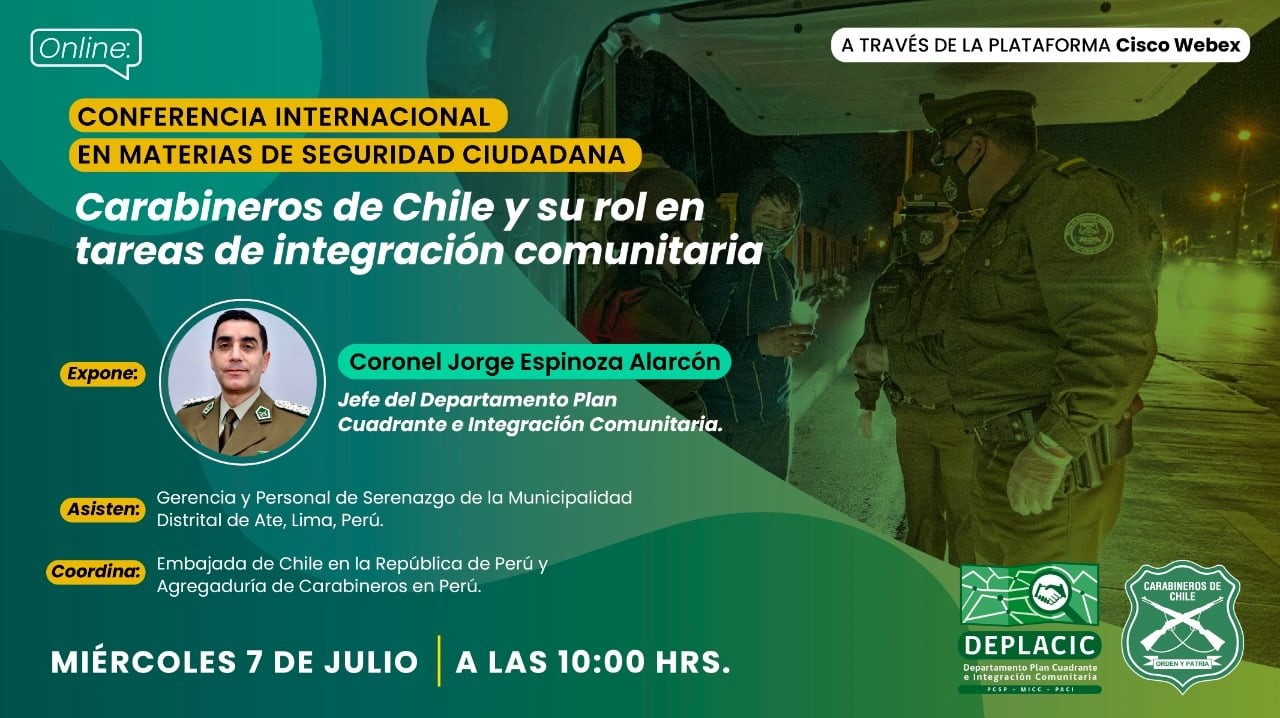 La Embajada de Chile en Perú y la Agregaduría de Carabineros de Chile en este país, coordinaron una jornada de capacitación en materias de seguridad ciudadana para el personal de Serenazgo de la Municipalidad Distrital de Ate, Lima.