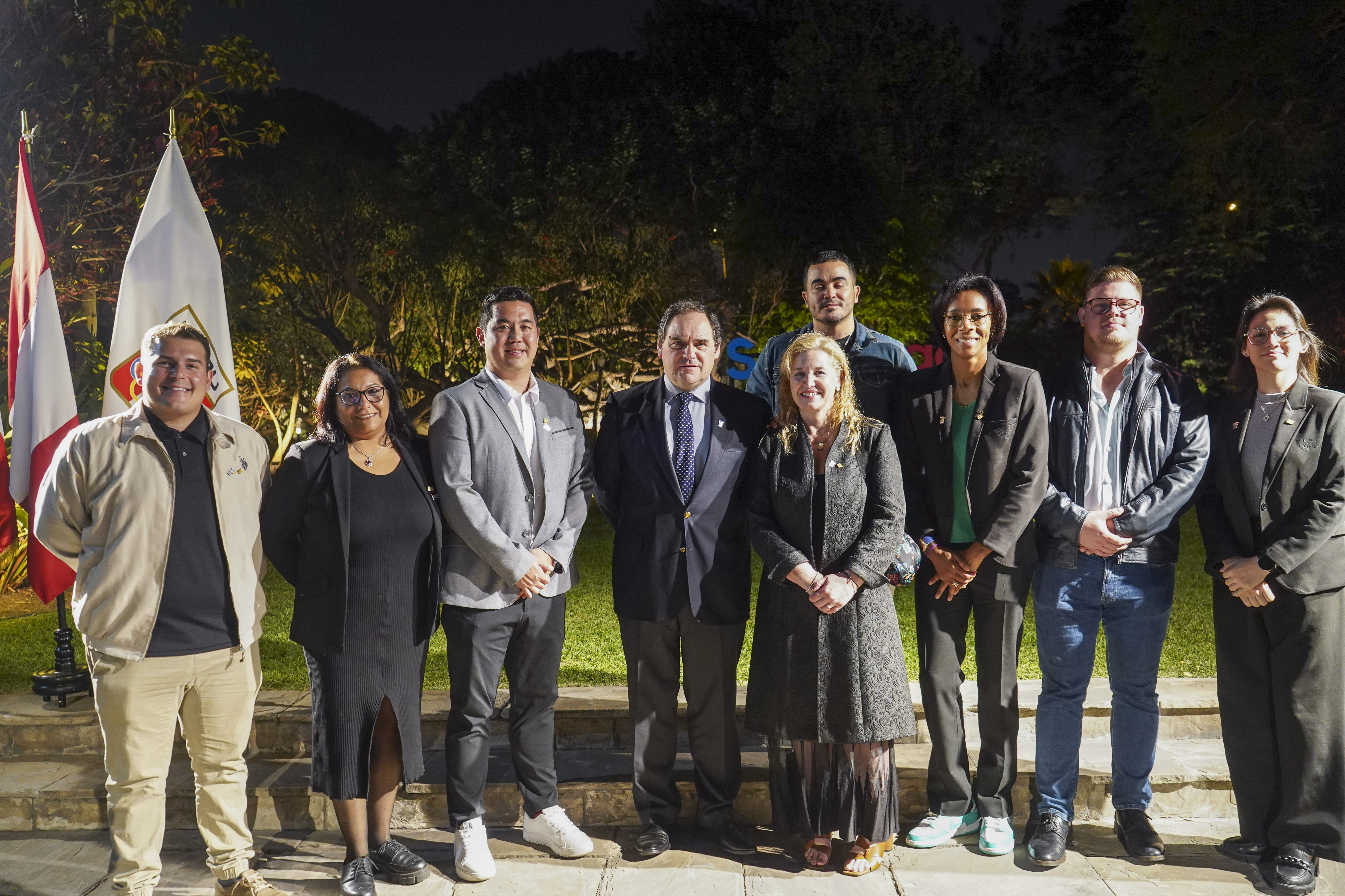 El Embajador Oscar Fuentes recibió a Ana María Choquehuanca, ministra de la Producción; Peter Camino, Director General de América; Guido Flores, presidente del Instituto Peruano del Deporte; María Martínez, Director Ejecutivo del Comité Olímpico Peruano; Leyla Chihuán, directiva del COP; Vladimir Armenteros, área técnica del COP; Andrés Goya, Asuntos Internacionales del COP y Diego Zegarra de Desarrollo de Proyectos.