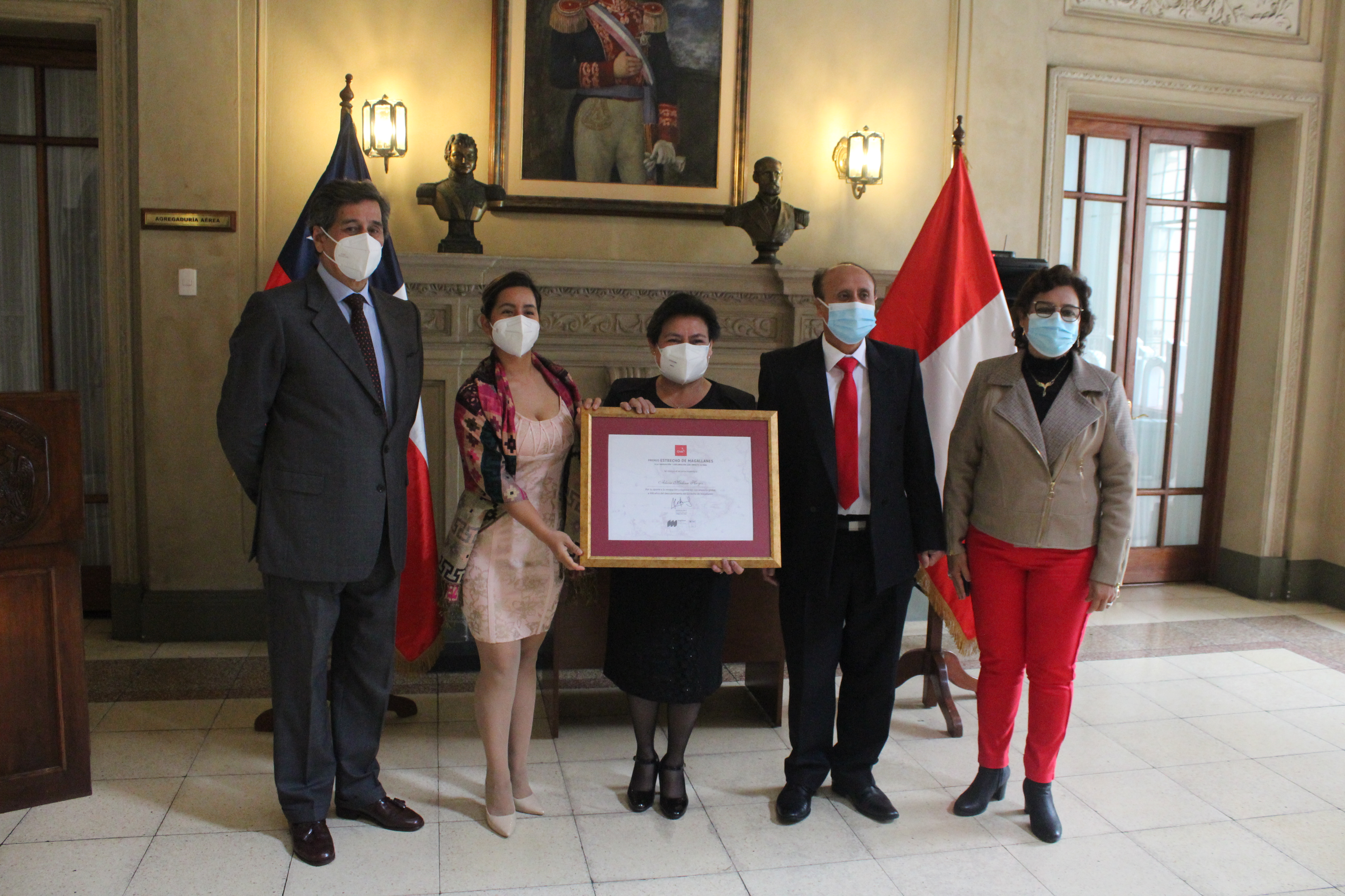 El Embajador Andrés Barbé hizo entrega del reconocimiento "Estrecho de Magallanes a la Innovación y Exploración con Impacto Global", a la señora Alicia Medina Hoyos, destacada ingeniera agrónoma y académica cajamarquina.