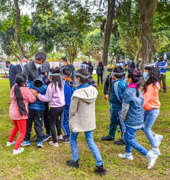 A la ceremonia también asistieron Nicole Stopfer, Directora del Programa Regional de Seguridad Energética y Cambio Climático en América Latina de la Fundación Konrad Adenauer, el Ministro Consejero Abraham Quezada Vergara, de la Embajada de Chile en Perú, y funcionarios y niños del programa Tambo para la Educación.