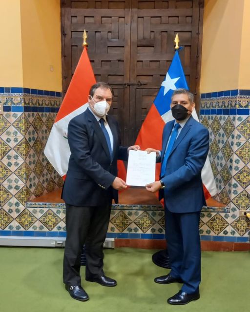 El Embajador Óscar Fuentes presentó ante el Director General (e) de Protocolo y Ceremonial del Estado, Ministro Enri Prieto Tica, copia de las cartas credenciales que lo acreditan como Embajador de Chile en Perú.