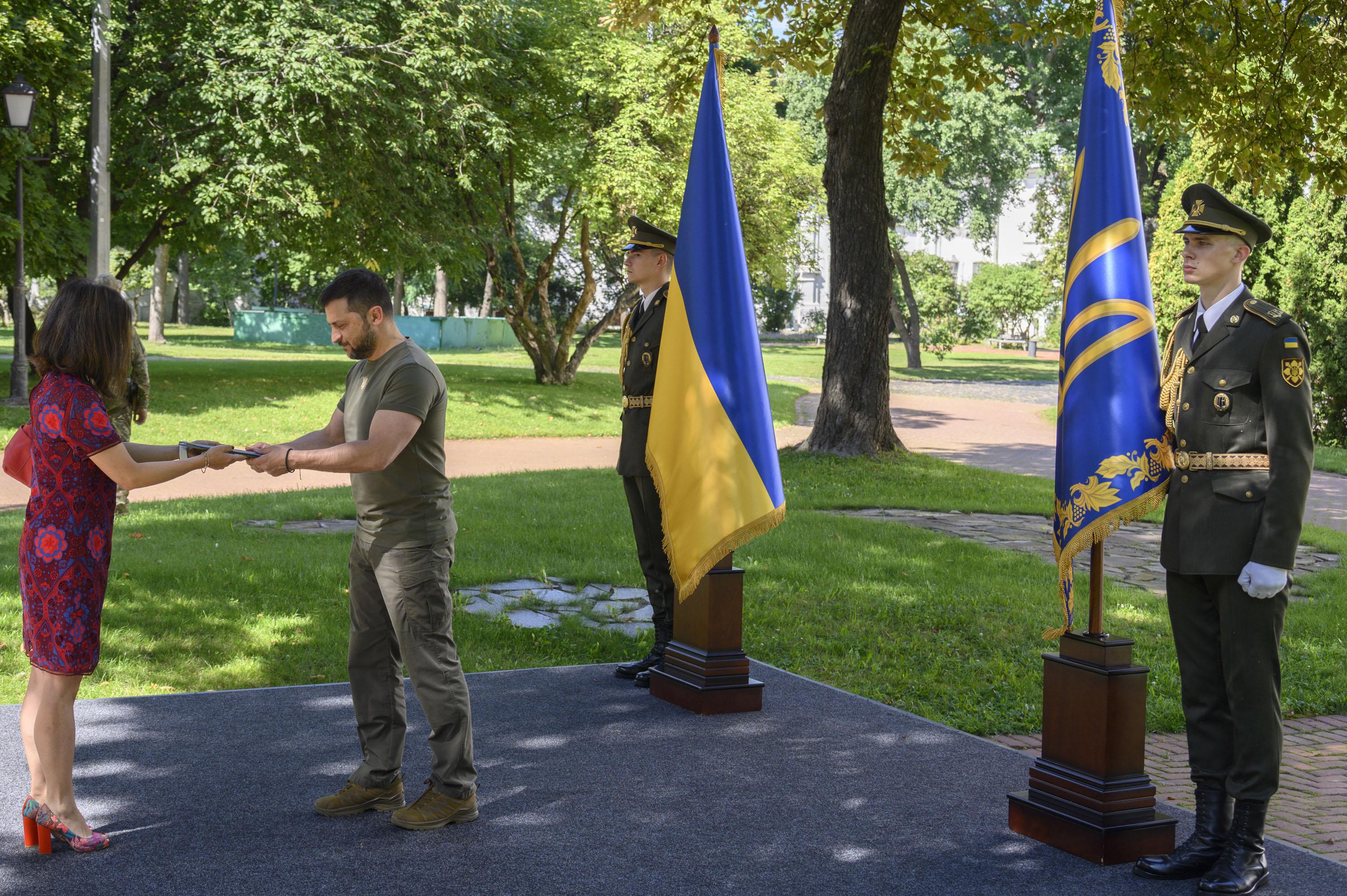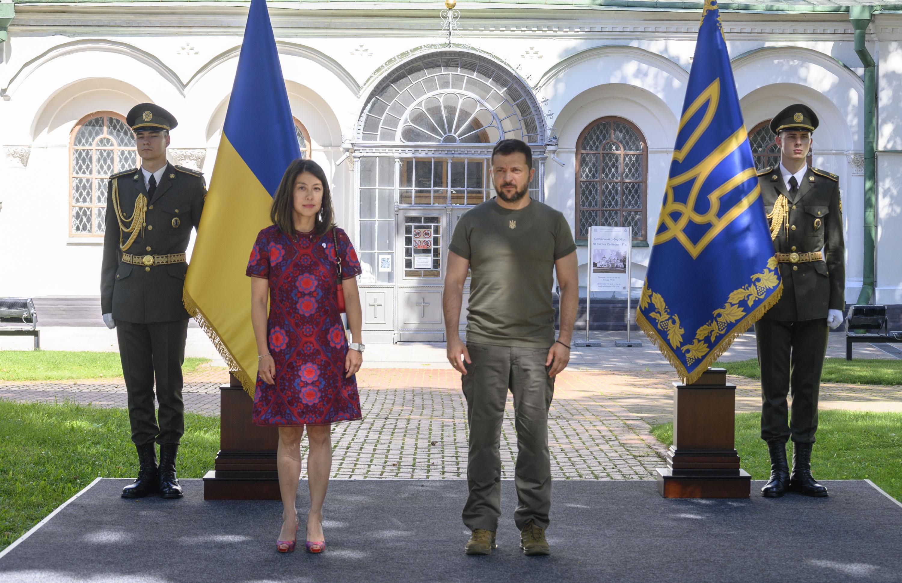 La Embajadora Aylin Joo presento sus cartas credenciales ante el Presidente Volodimir Zelenski, en calidad de embajadora concurrente desde Varsovia, el jueves 17 de agosto pasado, en una ceremonia, donde también lo hicieron los embajadores de Perú y Colombia.