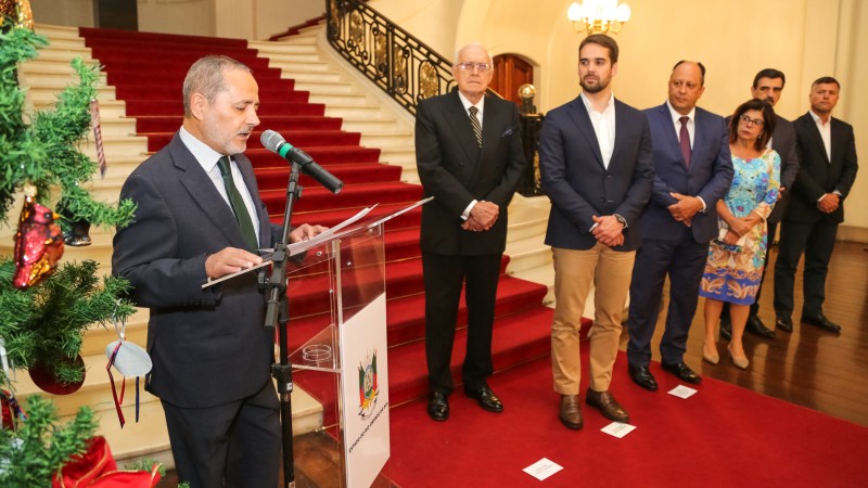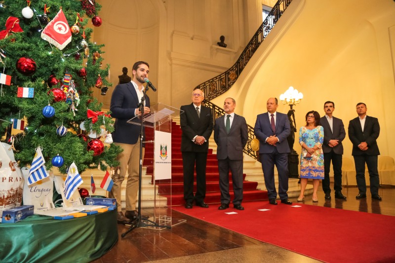 Invitado por el Gobernador del Estado de Rio Grande do Sul, Eduardo Leite, el lunes 2 de diciembre, el Cónsul General Mario Arriagada de L. participó en la ceremonia de inauguración del Árbol de Navidad en el Palacio Piratini, sede del Gobierno del Estado. El Cónsul Arriagada hizo uso de la palabra como decano del Cuerpo Consular.