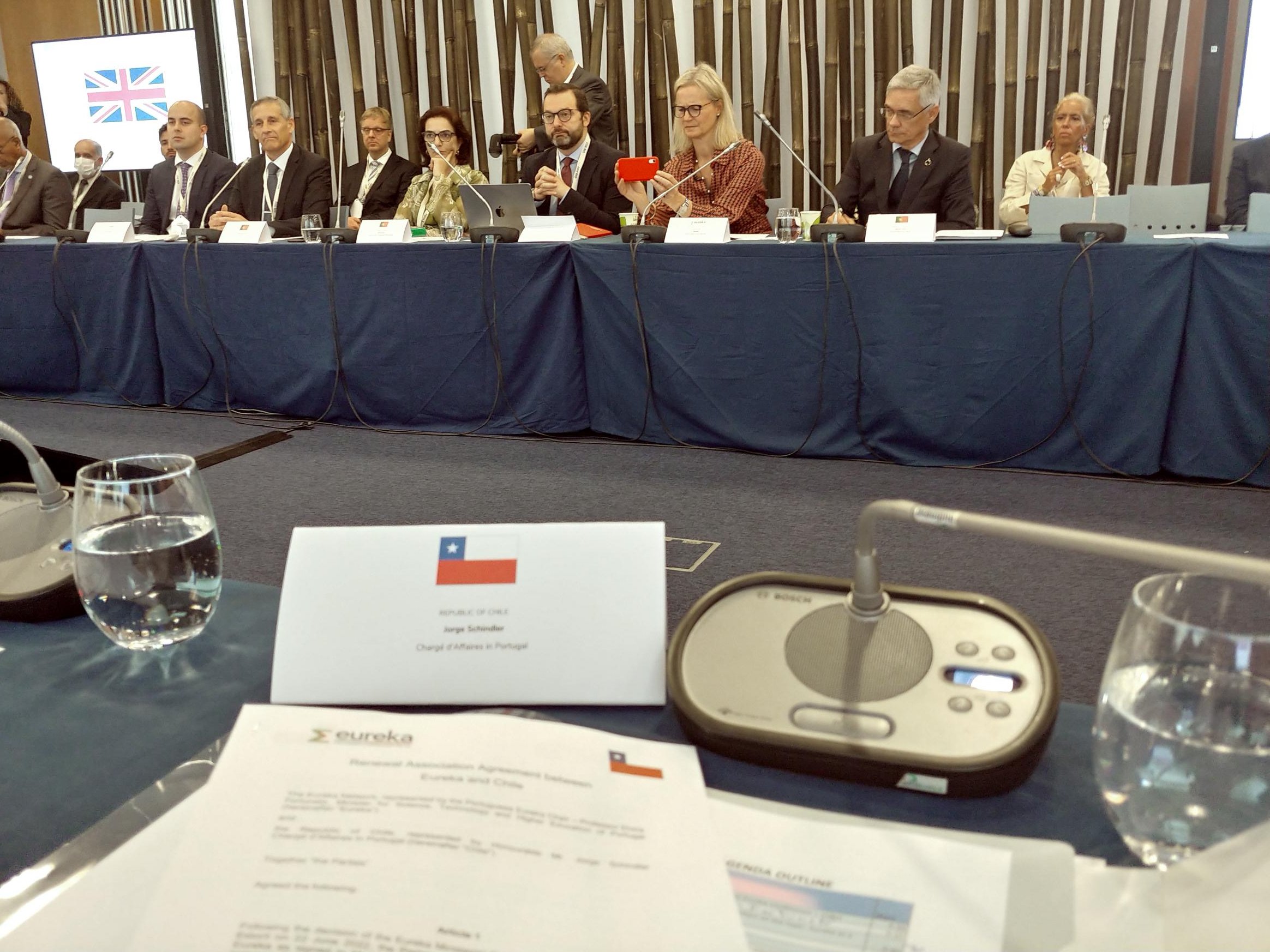 Asimismo, se procedió a la firma de los instrumentos jurídicos de incorporación a la Red Eureka por parte de Corea del Sur y de Canadá como nuevos miembros plenos. Seguidamente, el Encargado de Negocios a.i. Jorge Schindler, suscribió, junto a la Ministra de Ciencia, Tecnología y Educación Superior de Portugal, Dra. Elvira Fortunato, el texto del Acuerdo de Reasociación entre Eureka y Chile (Renewal Association Agreement between Eureka and Chile).