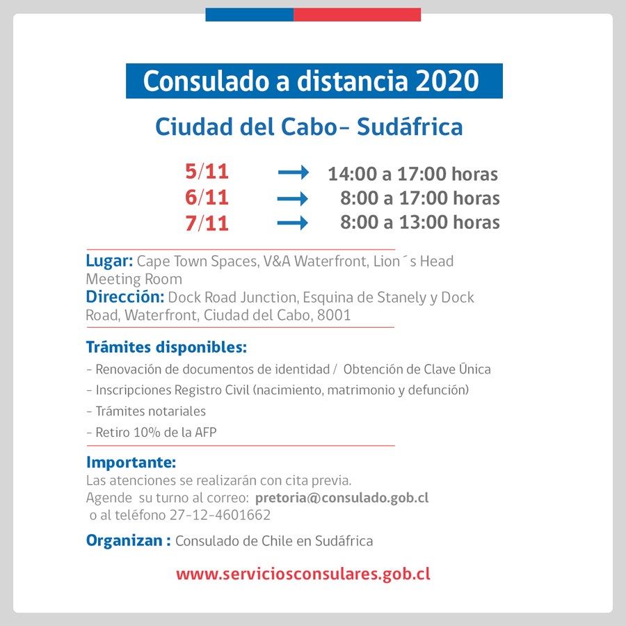 Consulado a distancia en Ciudad del Cabo | 5, 6 y 7 de noviembre