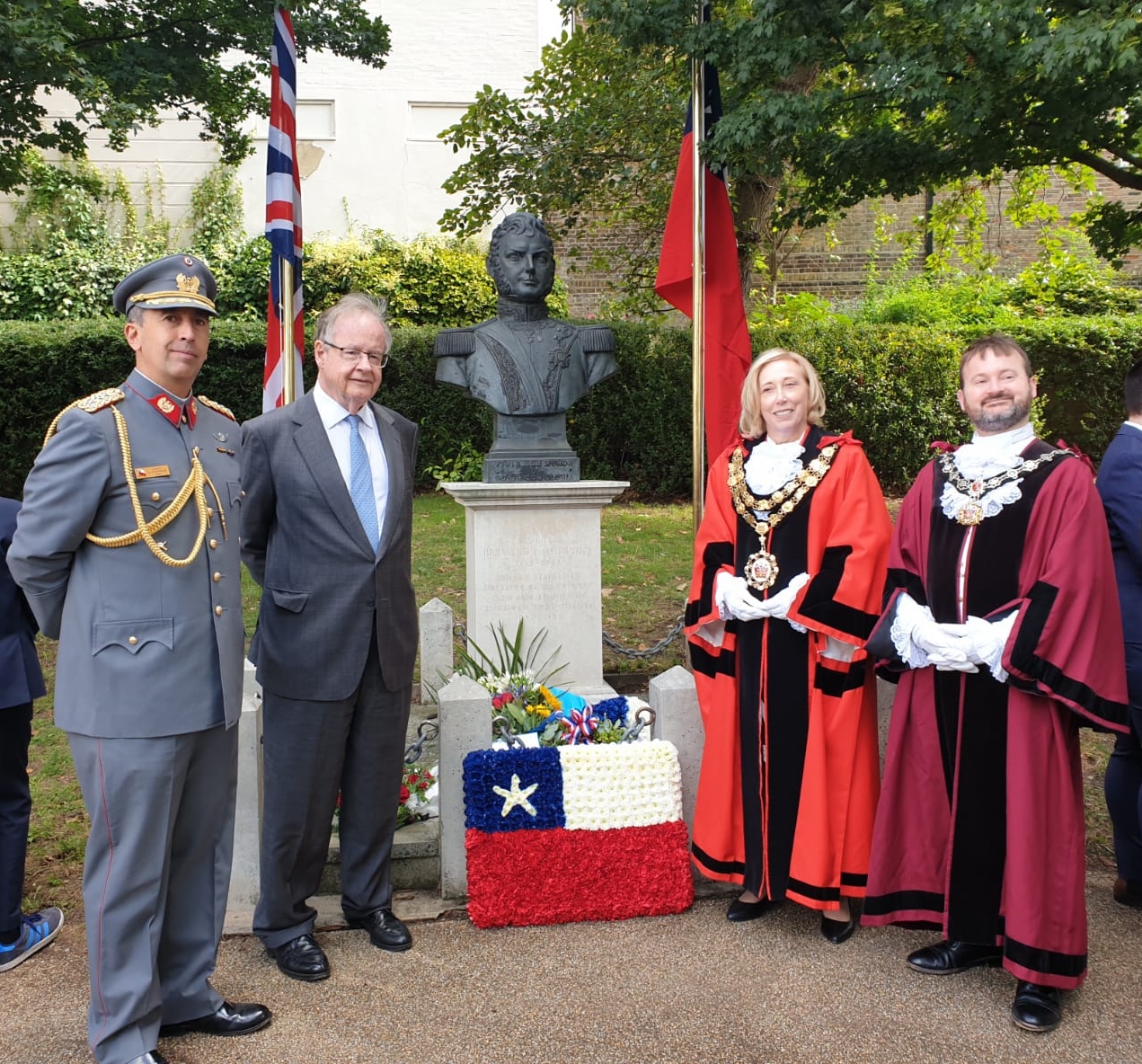 Este martes 20 de agosto, se realizó un acto de conmemoración del natalicio de Bernardo O'Higgins en Richmond. En él participaron la alcaldesa de Richmond, Embajadores, representantes del Ministerio de Defensa británico, agregados militares de embajadas residentes y descendientes de O'Higgins.