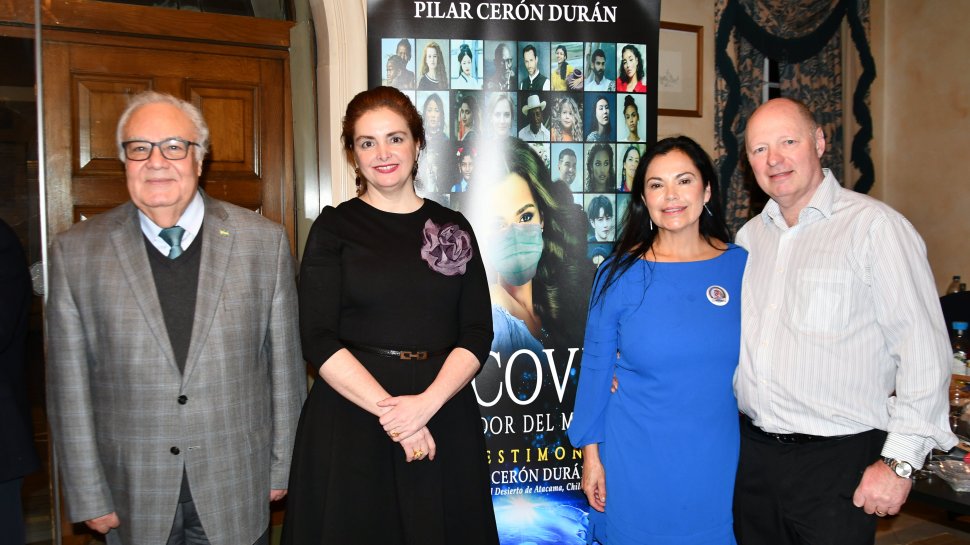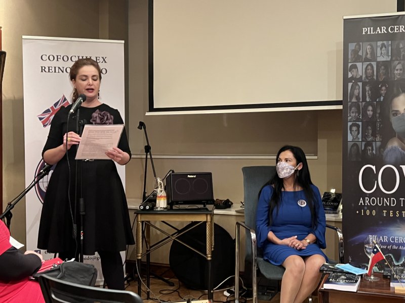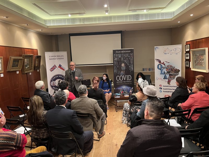 El jueves 12 de enero se desarrolló en la sala de eventos de la Embajada un evento cultural con asistencia de público de la comunidad chilena, latinoamericana y británica, para lanzar el libro “Covid alrededor del mundo”, escrito por la chilena Pilar Cerón.