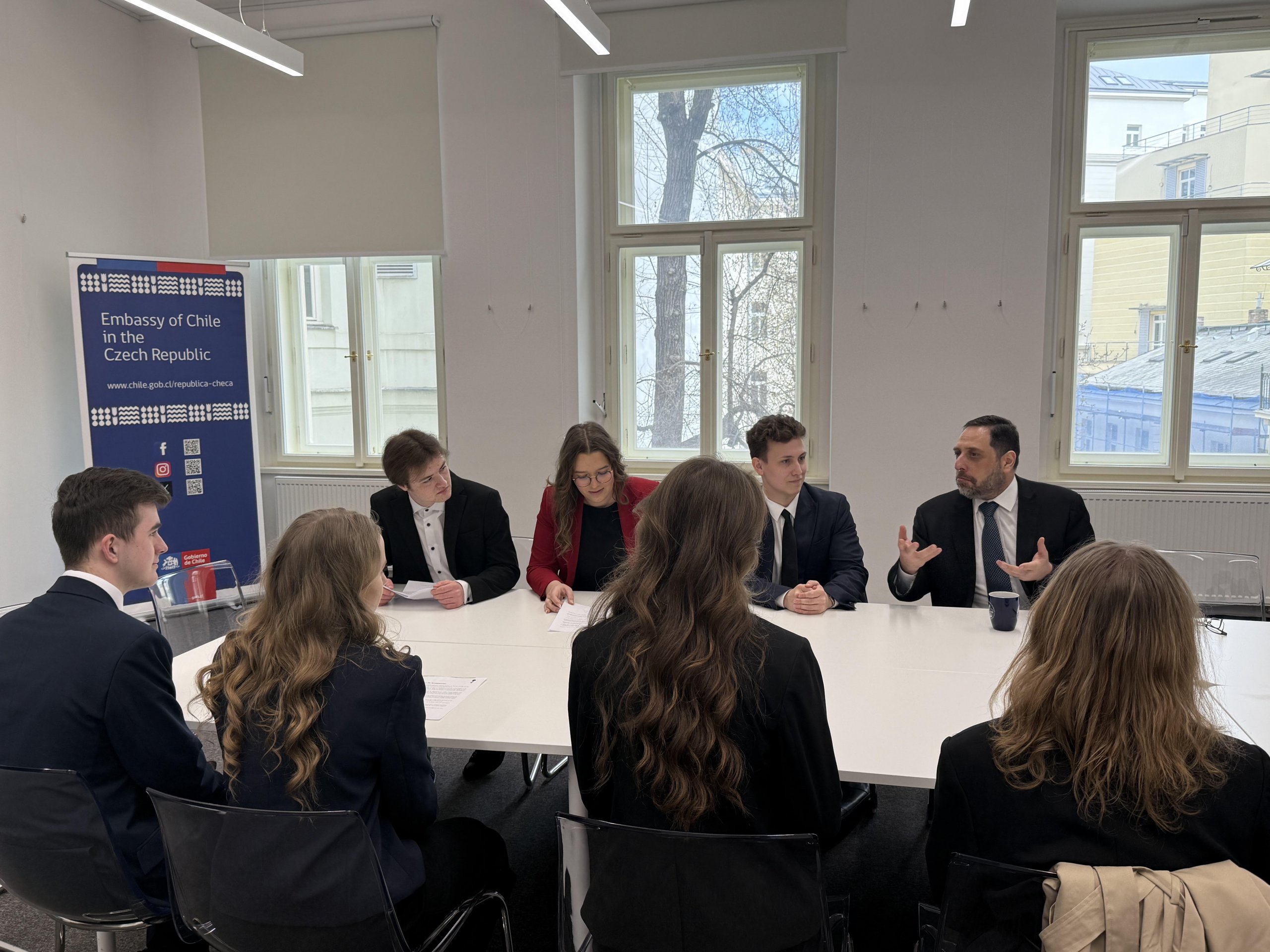 La Embajada de Chile en República Checa recibió a una delegación de estudiantes de Prague Student Summit, un proyecto educativo de la Asociación para Asuntos Internacionales que busca que los jóvenes se involucren en las relaciones internacionales y el derecho internacional.