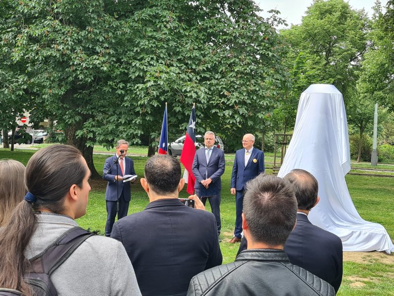 Por la parte chilena, la estatua fue inaugurada por el embajador Hernán Bascuñán Jiménez y, por parte de Praga, por el teniente de alcalde del distrito, Václav Koženy.