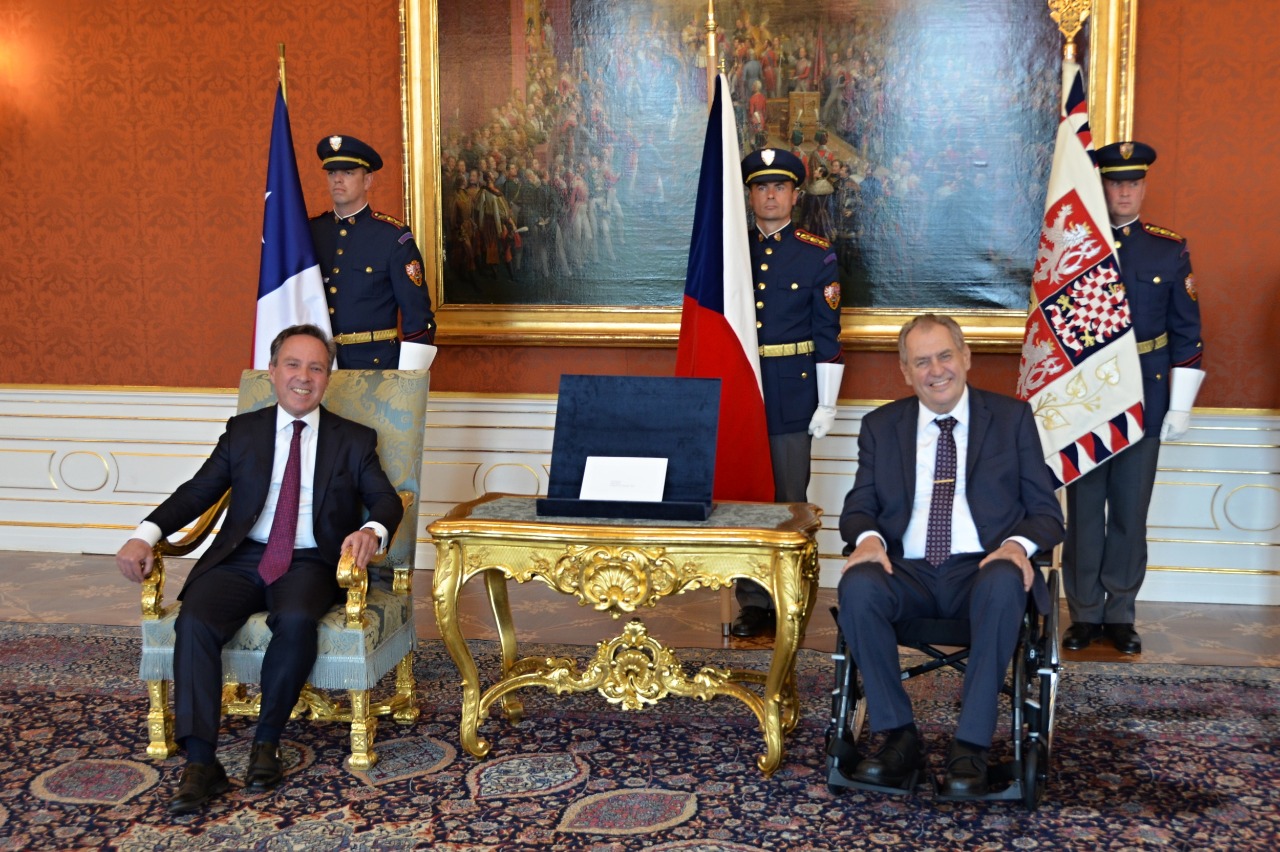 El Embajador de Chile en República Checa, Hernán Bascuñán, entregó sus cartas credenciales al Presidente Milos Zeman.