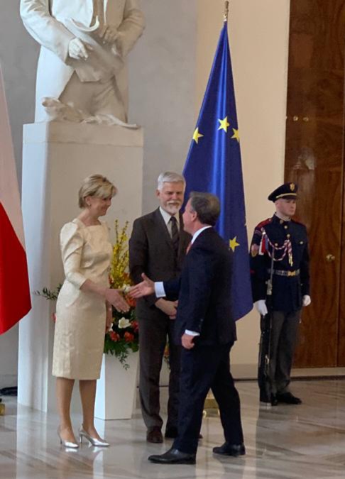 En el encuentro, el Presidente Pavel recordó las palabras de la ex Secretaria de los Estados Unidos, Madeleine Albright, quien nació en Praga y falleció el año pasado, destacando lo importante que es comunicarse con los demás.