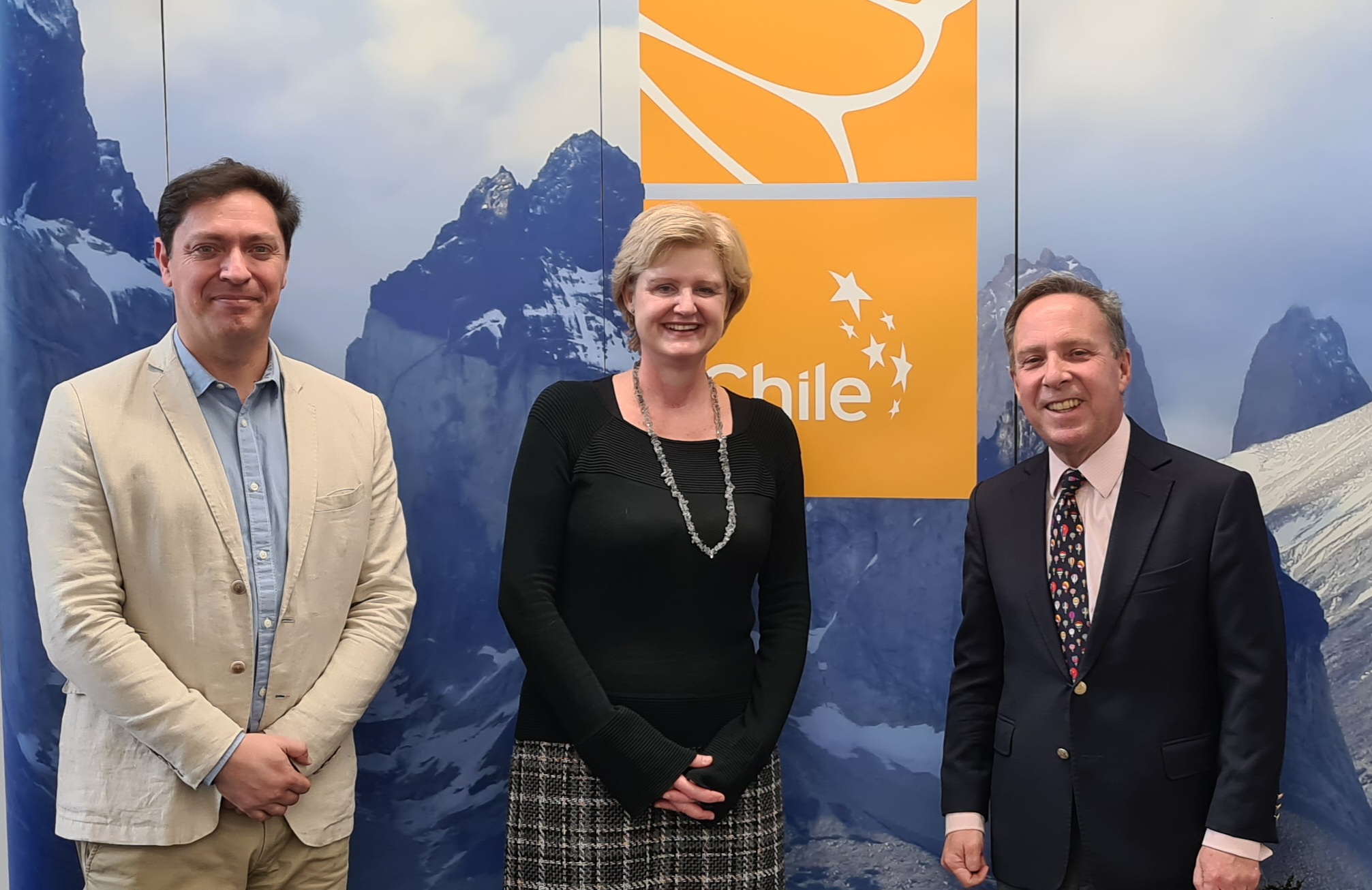 La Sra. Dita Kubíková, nueva Cónsul de la República Checa en Santiago, fue recibida por el Embajador Hernán Bascuñán y el Cónsul Carlos Gajardo en dependencias de la Embajada de Chile.