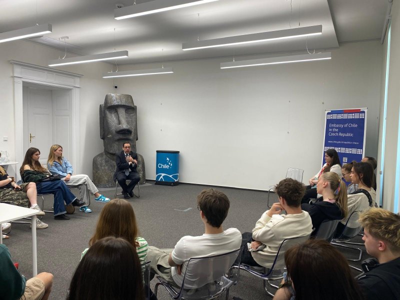 La Embajada de Chile en República Checa recibió a estudiantes de Liceo Clásico Modrany de Praga, con el objetivo de conversar sobre Chile y presentar las principales riquezas y atractivos de nuestro país, así como conocer el trabajo de la Embajada.