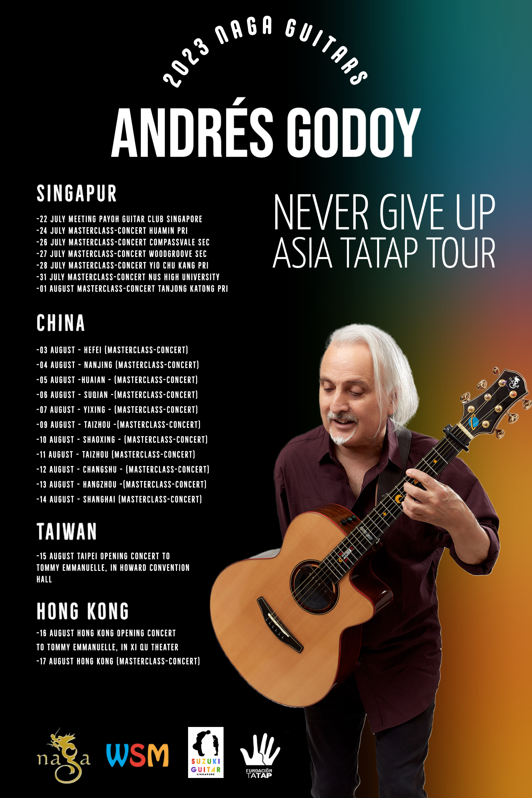 El martes 25 de julio, la Embajada de Chile en Singapur tuvo la oportunidad de reunirse con Andrés Godoy, músico y compositor chileno quien inaugura en este país su gira por Asía, titulada “Never Give Up Asia Tatap Tour”, organizada por Naga Guitar. El programa en Singapur comprende desde el 22 de julio hasta el 1° de agosto.
