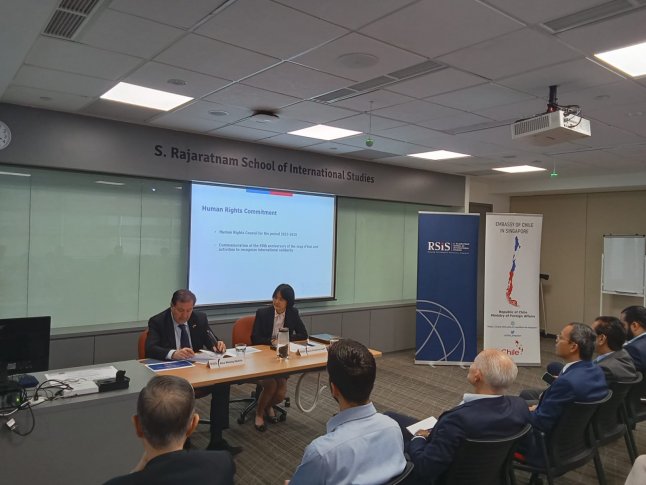 Finalmente, el secretario general de Política Exterior dictó una charla magistral en el Rajaratnam School of International Studies (RSIS) de la Nanyang Technological University de Singapur, oportunidad en la que presentó los principales elementos de la política exterior de Chile, así como la importancia en la relación de nuestro país con el Sudeste Asiático, analizando el estatus como “Socio de Desarrollo” de la Asean, que Chile ostenta desde 2019, y que permite estrechar lazos entre ambas regiones para fomentar la cooperación económica y política del sur global.