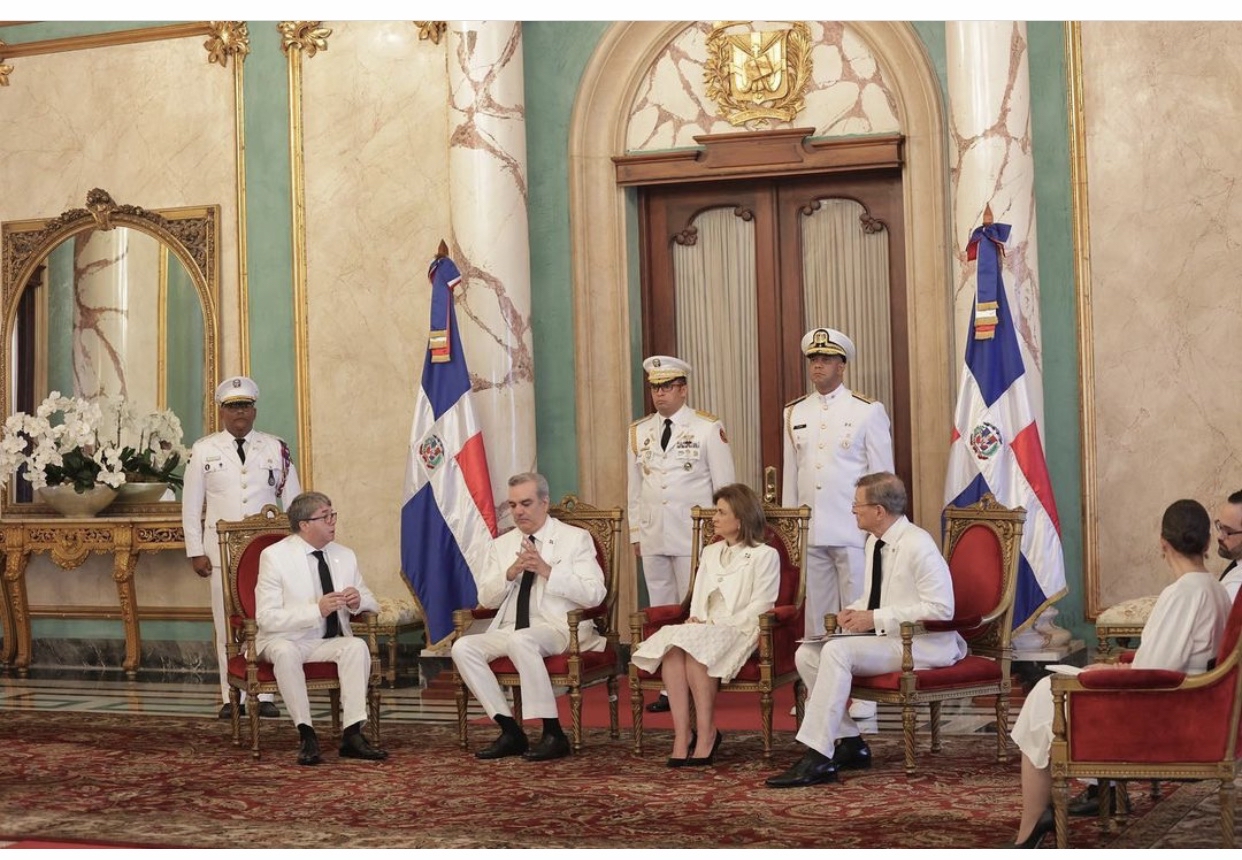 El Presidente Luis Abinader, acompañado de la Vicepresidenta Raquel Peña y el Ministro de Relaciones Exteriores, Roberto Álvarez, recibió las Cartas Credenciales del nuevo Embajador extraordinário y plenipotenciário de Chile en la República Dominicana, Axel Eduardo Cabrera Martínez.