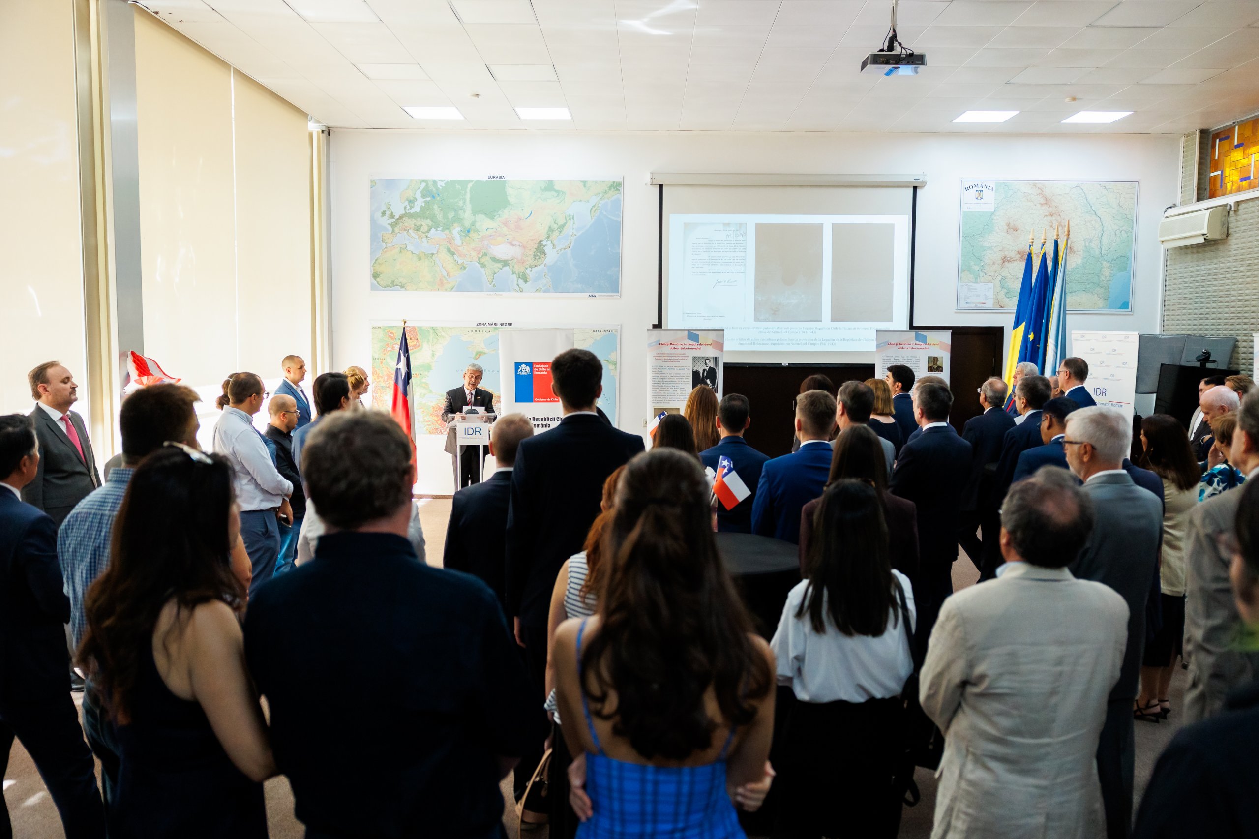 El martes 16 de septiembre de 2025 se llevó a cabo en Bucarest la ceremonia oficial de conmemoración del centenario de relaciones diplomáticas entre Chile y Rumanía. Este evento, organizado con el apoyo del Instituto Diplomático del Ministerio de Asuntos Exteriores de Rumanía y del Grupo Parlamentario de Amistad Rumanía–Chile, incluyó la inauguración de la exhibición documental “100 años de relaciones entre Chile y Rumanía”. La ceremonia contó con la participación de alrededor de 80 personas, entre autoridades, diplomáticos y representantes de instituciones públicas de ambos países, así como chilenos residentes en Rumanía.