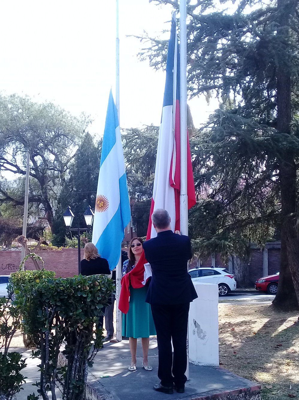 El Subdirector de Ceremonial y Protocolo de la Municipalidad de Salta, José Domingo Vilaseca, dispuso la locución oficial, la Banda de Música municipal que interpretó ambos himnos nacionales, ornamentación, limpieza y seguridad del acto en la Plaza.