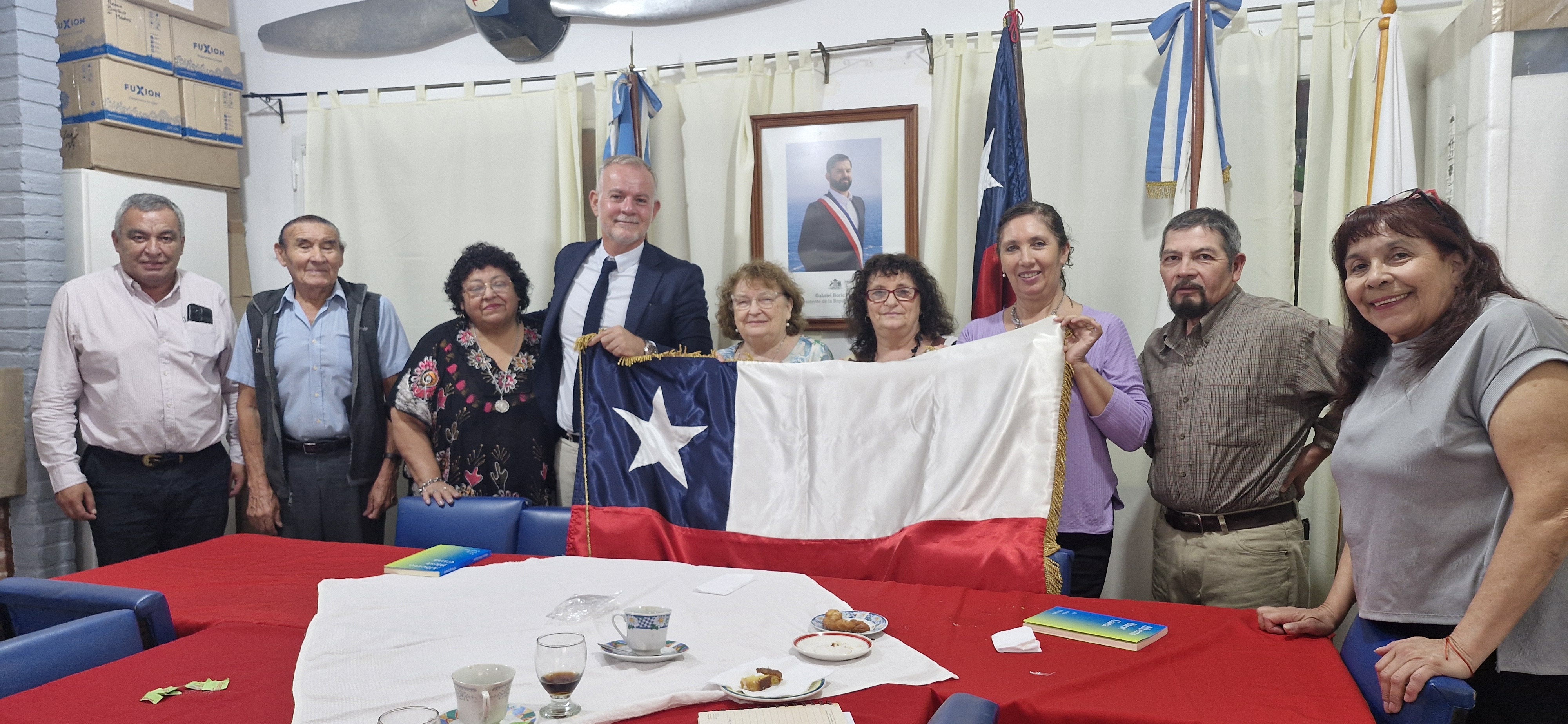 El pasado lunes 9 de diciembre de 2024, el cónsul general de Chile en Salta con jurisdicción en Jujuy, se reunió con la comunidad chilena residente en esa provincia argentina a fin de establecer un canal de mutua colaboración y conocer la realidad de alrededor de 200 compatriotas que viven en ese rincón del norte argentino. El funcionario diplomático fue recibido por Ana Aja, presidenta de la asociación de chilenos en Jujuy y por miembros de la directiva, dándole la bienvenida y abordando las actividades sociales y culturales que llevan a cabo en la zona.