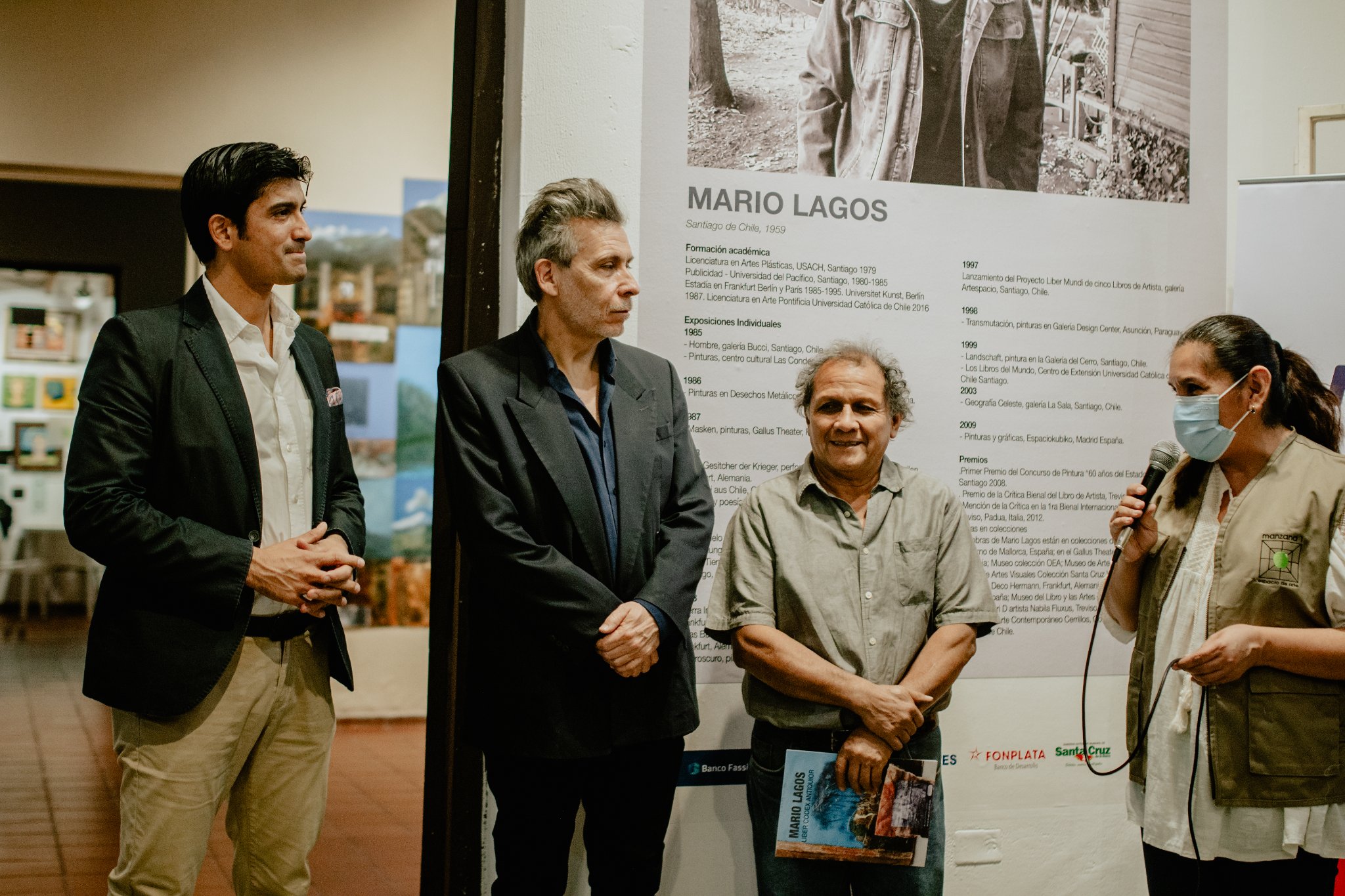 En la inauguración, el artista estuvo acompañado de uno de los más destacados escultores bolivianos, Juan Bustillo, y del Cónsul General de Chile, Raúl Rivera. Según Mario Lagos, esta exposición tiene como pilar el concepto del “libro del artista”, en la cuales se cruzan los lenguajes icónicos y verbal escrito. en “Liber Codex Antiquior” y donde existe un uso de técnicas reproductivas del collage, traspaso, offset, fotocopias, en un proceso de distinción visual entre objetos profanos y artísticos, generando una obra que acerca nuestros “reinos latinoamericanos” desde las artes visuales.