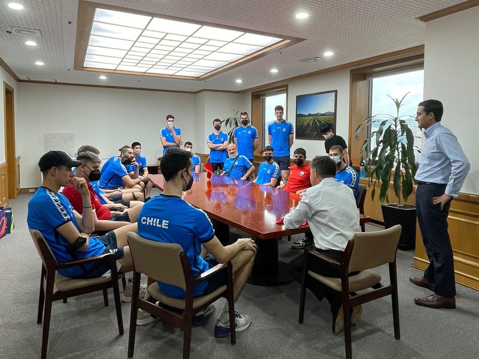 Previo al partido de cuartos de final entre Chile y Cuba, el Cónsul Lucas Pavez visitó a los jugadores para valorar el esfuerzo del equipo, quienes viajaron más de 18.000 km para representar al país en este torneo internacional. Junto a ello, recalcó lo significativo que es para la comunidad residente poder tener la oportunidad de alentar a la selección chilena.