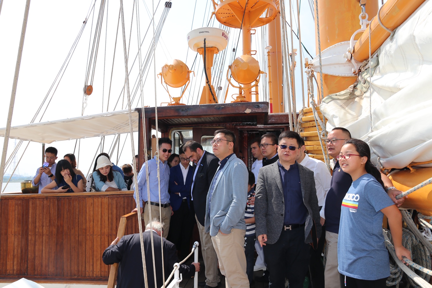 Los importadores fueron recibidos a bordo por el Embajador de Chile en China, Luis Schmidt, el Viecomandante del Buque, Capitán de Fragata Andrés Silva, y el representante en China de ASOEX, Shariff Christian Carvajal, quienes ofrecieron unas palabras de bienvenida, enfatizando la misión que cumple esta nave en sus cruceros de instrucción. Luego, oficiales y tripulantes invitaron al grupo a hacer un recorrido por las distintas dependencias de la "Dama Blanca".