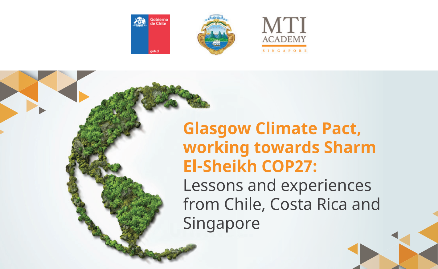 Este 13 de julio, se desarrolló en Singapur el seminario “Glasgow Climate Pact, working towards Sharm El-Sheikh COP-27: Lessons and experiences from Chile, Costa Rica and Singapore", co-organizado por la Embajada de Chile, la Embajada de Costa Rica y el Ministerio de Industria y Comercio de Singapur.
